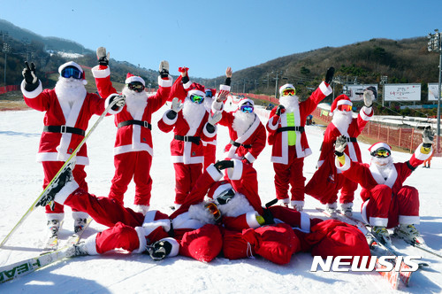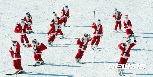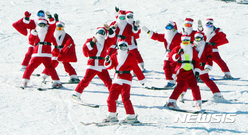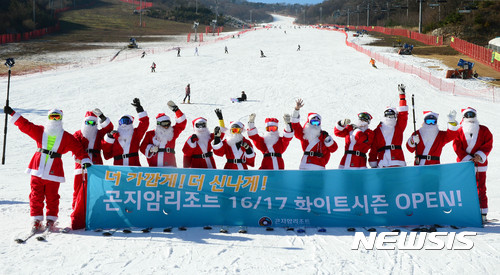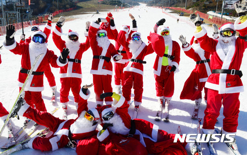 2日午前、昆池岩リゾート・スキー場(京畿道広州市)がオープンし、サンタ姿のスキーヤーたちが来場者の目を楽しませた。