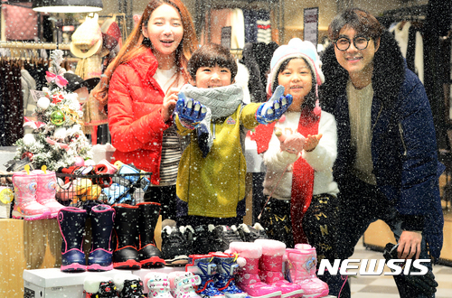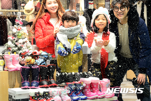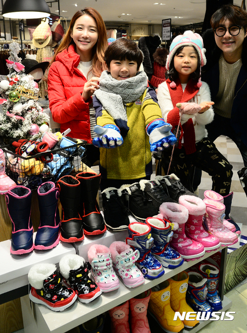 14日、ロッテマートソウル駅店で、防寒グッズの販売促進キャンペーンが開催された。