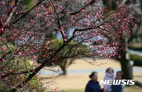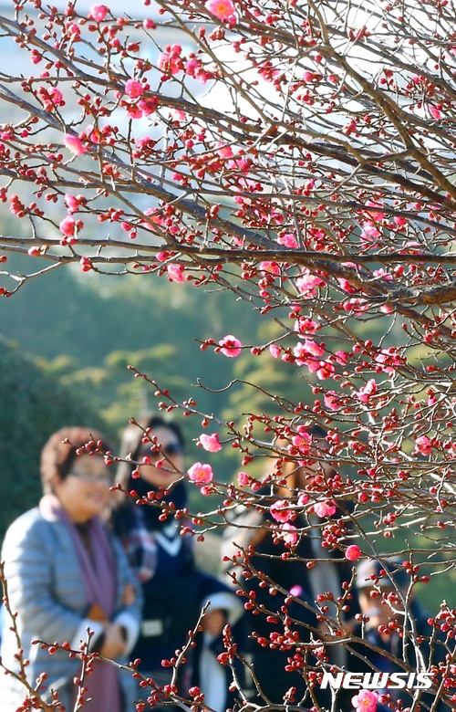 二十四節気の一つ、「小寒」まであと二日となった3日午後、釜山市南区の国連記念公園では紅梅が開花した。