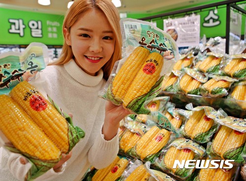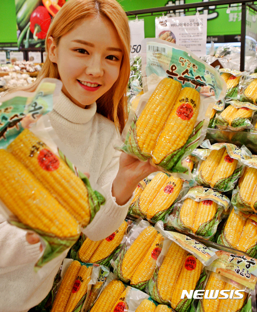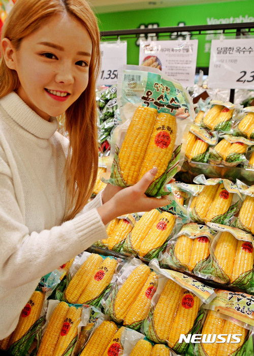 ソウル市中区蓬莱洞のロッテマート・ソウル駅店で6日、手軽に調理して食べられる冬場の間食として人気があるトウモロコシの販促イベントが開かれた。