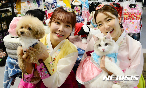 12日、ロッテマートソウル駅店で、ペット向け晴れ着の販売促進キャンペーンが開催された。