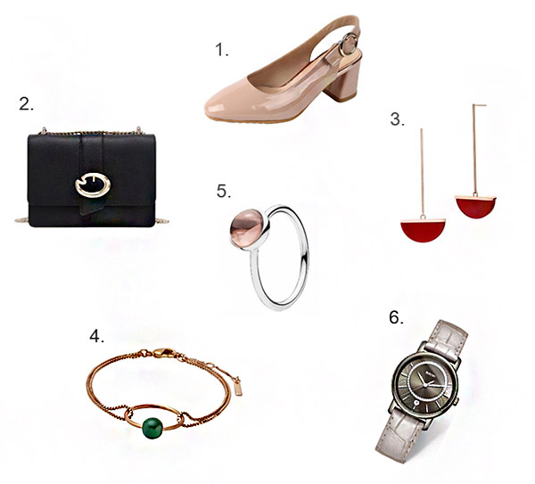 チェーンバッグはストラップ部分がチェーンになっており、革やひもでできているアイテムに比べ、コートなどアウターを着ているとき、よりいっそう目を引く。また、秋になると服の色が濃くなるため、ジュエリーはカラフルなものを選ぶのがよい。一番顔に近いイヤリング(ピアス)を思い切って赤いものにすると、生き生きとしたスタイリングが可能。