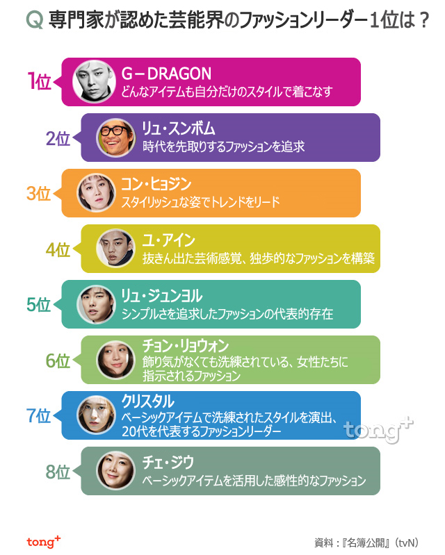 スターの全てを興味深いランキングで紹介する番組『名簿公開』(tvN)では、ファッション専門家たちが選ぶ芸能界最高のファッションリーダーを発表。どんな服でも自分らしいスタイルで着こなすのはもちろん、感性的なファッションでトレンドをリードしているスターたちを見てみよう。