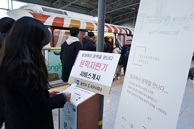 竜仁市、光明市にはボタンを押すだけで詩や随筆、小説など文学作品が印刷されて出てくる文学自動販売機がある。この自動販売機では詩人・尹東柱(ユン・ドンジュ)の「自画像」から小説家・玄鎮健(ヒョン・ジンゴン)の「運のいい日」、サン=テグジュペリの「星の王子さま」など、国内外の有名文学作品1000編を目にすることができる。短い文、長い分の選択が可能で、毎月新しい作品がアップデートされる。市庁民願室、駅舎など流動人口が多い場所にあり、いつでもどこでも市民が本を身近に楽しめる環境を整えるためにつくられたとのことだ。