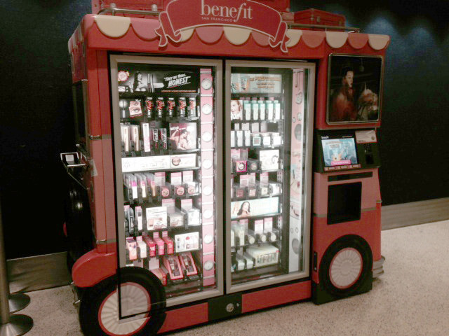 米国の空港には有名化粧品ブランド「Benefit(ベネフィット)」の自動販売機がある。「Benefit」を象徴するピンクの外観、売り場をコンパクトにしたようなデザインが目を引き、ティントやブラッシャーなど「Benefit」の定番アイテムを手軽に購入することができる。特に女性たちの関心を集めている理由は、自動販売機でしか購入できない限定アイテムがあるからだ。韓国や米国でも購入することができない超ミニサイズのブラッシャーやチーク、リップなどからなる旅行用キットだ。