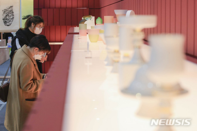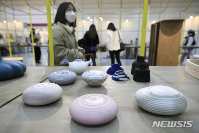 3日午後、ソウル市江南区のCOEXで開かれた「2020工芸トレンドフェア」を訪れて工芸品を見て回る市民の様子。