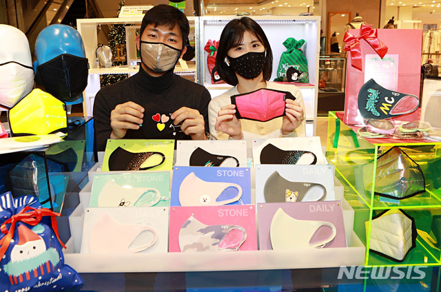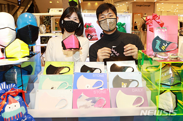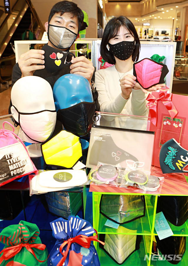 ソウル市鍾路区のロッテデパート本店で21日、機能性素材や華やかなデザインが特徴のフェイスウエア(マスク)ブランド「ビッグウェールズ」のポップアップストアのPRイベントが開かれた。