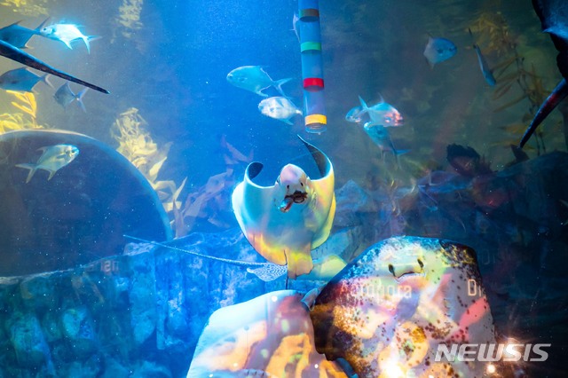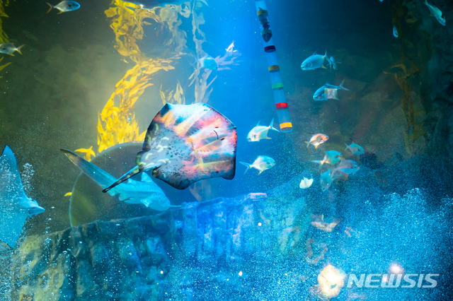 【NEWSIS】ロッテワールド・アクアリウムでは、多様な海洋生物が透明な管を通じて降りてくるエサを食べる姿を詳しく観察できる生態説明会「フィーディング・ステーション」を行うことを1月28日、明らかにした。今回の生態説明会は、鮮やかな5色のライトが設置され、神秘的な海の様子を表現している。