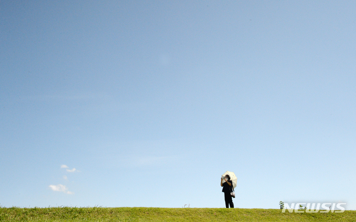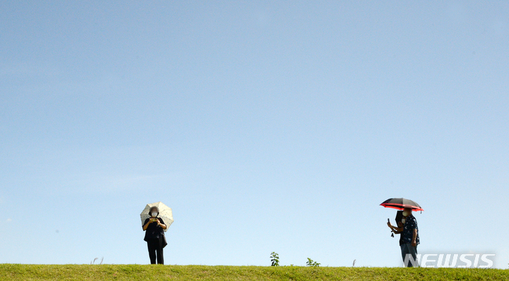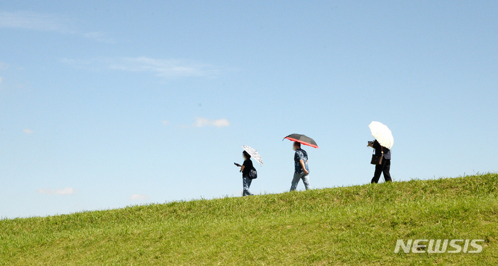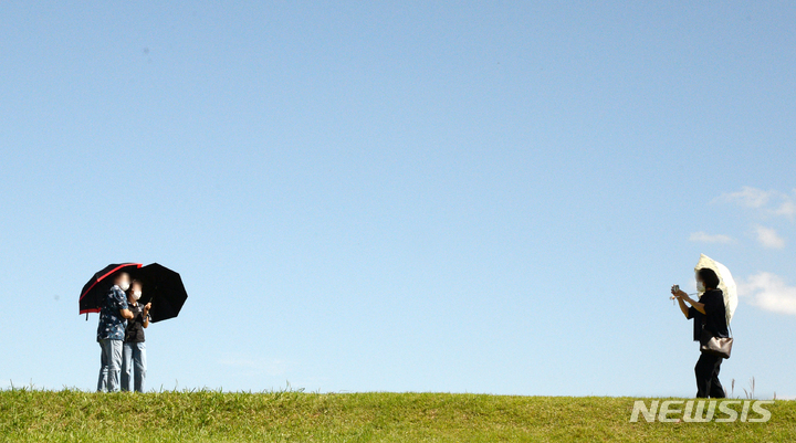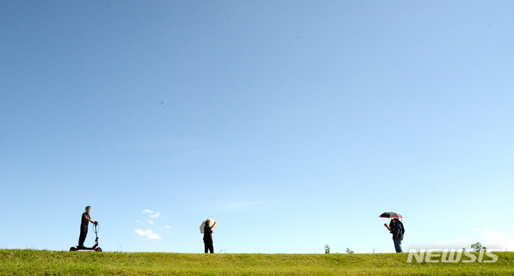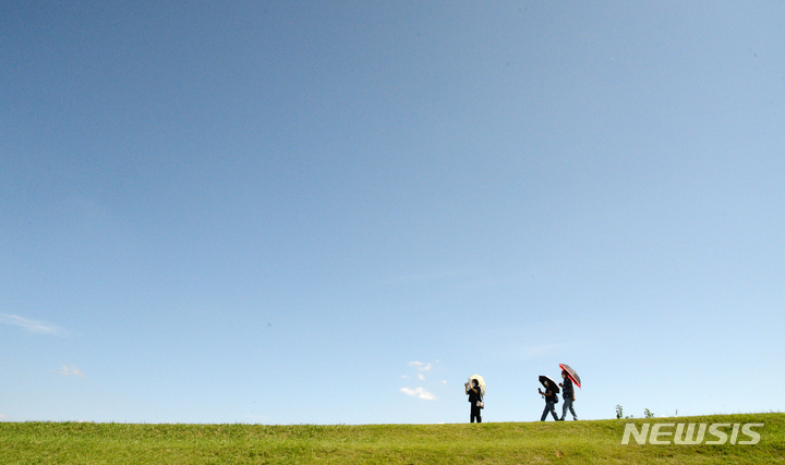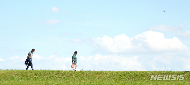 うららかな秋の天気が続く27日、碧骨堤(全羅北道金堤市)の堤防上を行き交う観光客の後方には、秋にぴったりの青空が広がっていた。