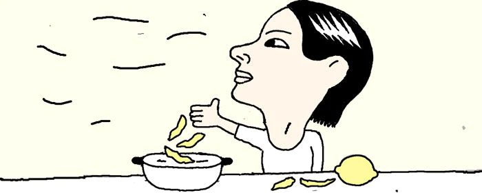 料理した後、家の中ににおいがこもってしまった時は、鍋に水とレモンの皮を入れて煮ると、においがなくなる。