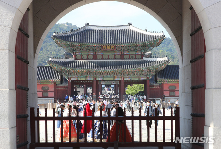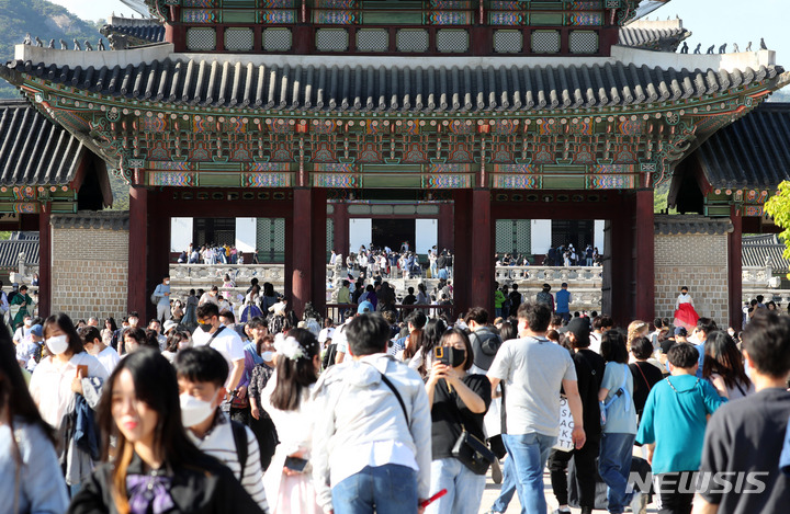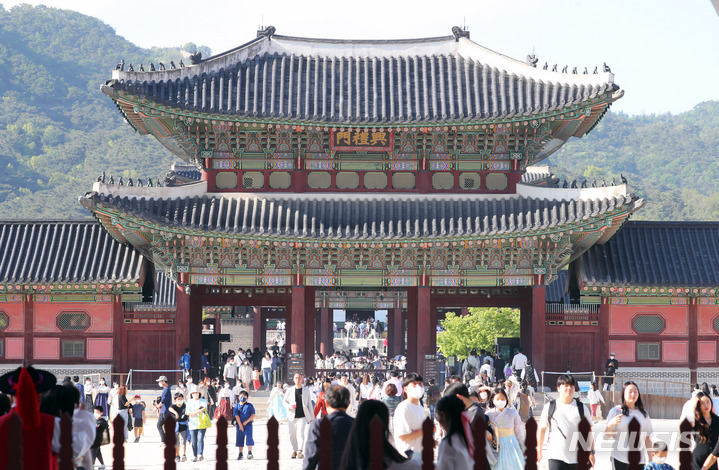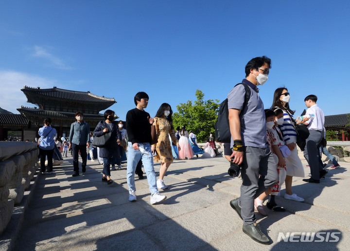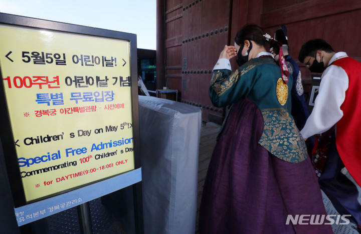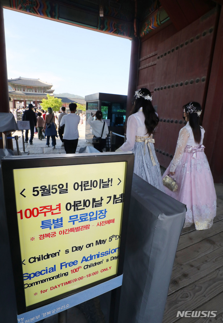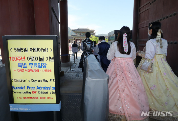 「子どもの日」100周年に当たる5日午後、ソウル市鍾路区の景福宮を訪れた観光客が休日を過ごしている様子。