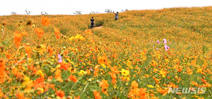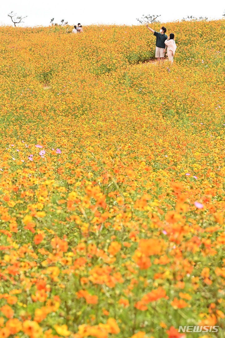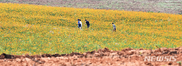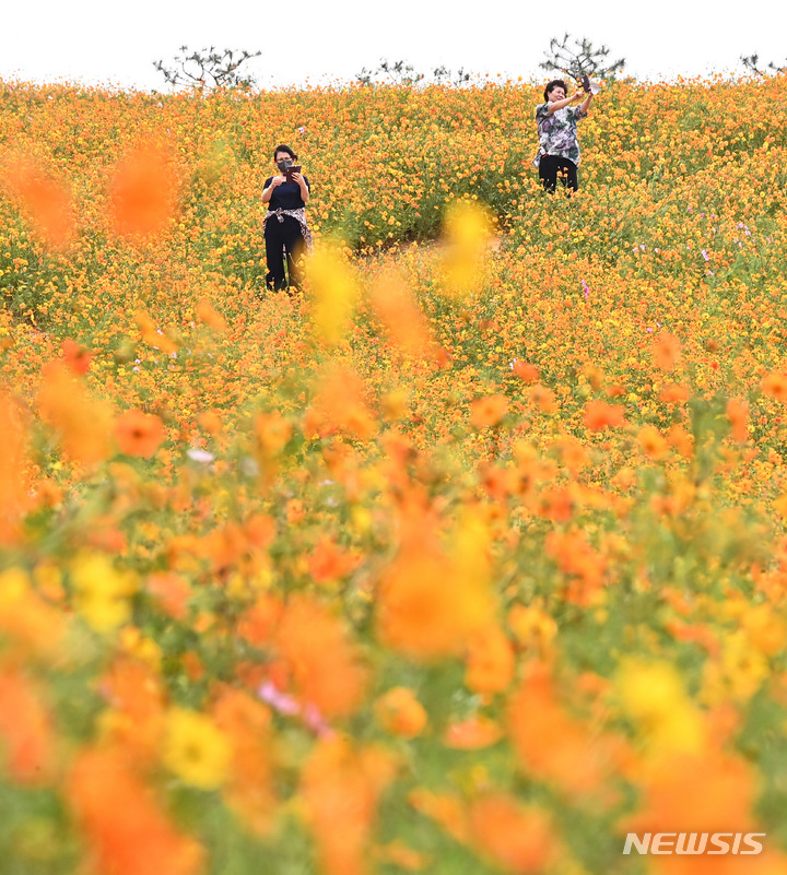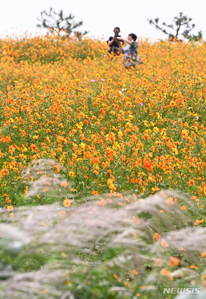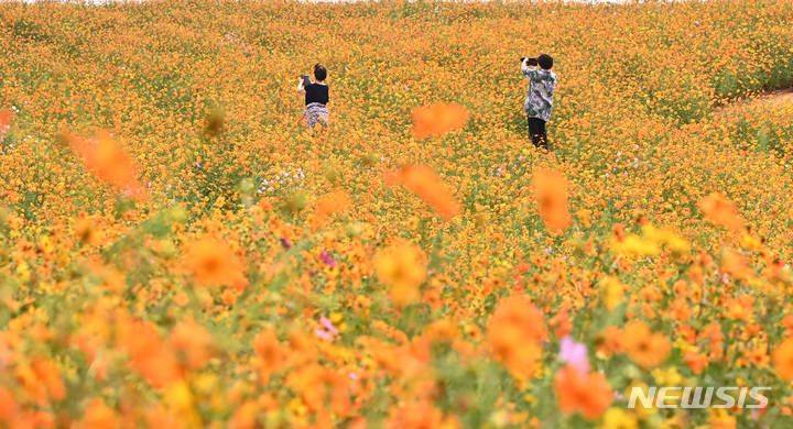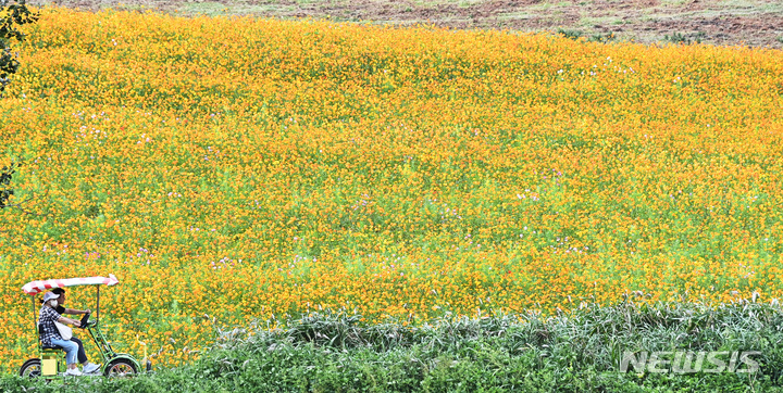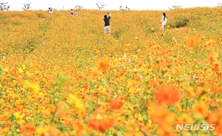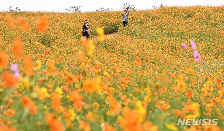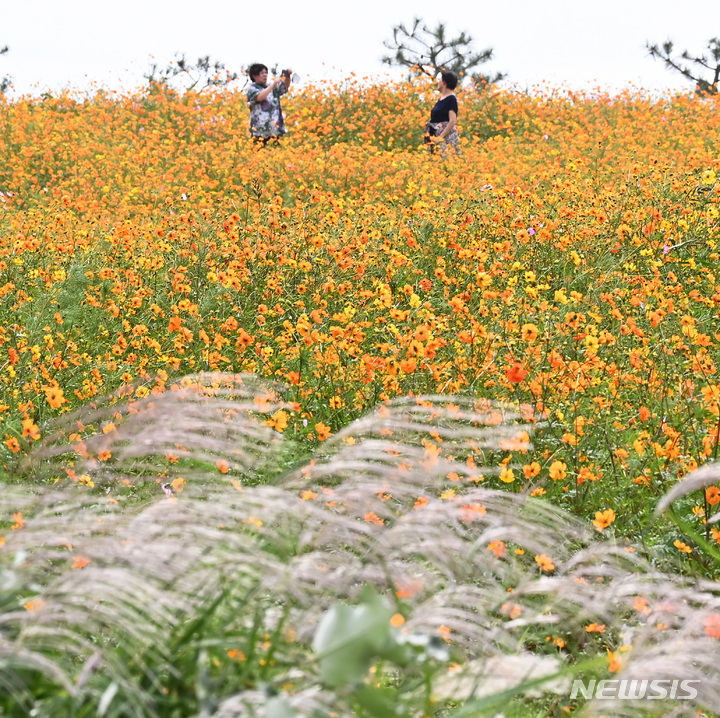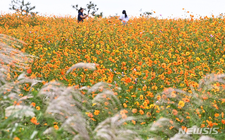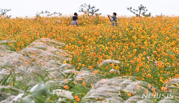 14日午後、京畿道安城市孔道邑の安城ファームランドでは、一面に広がるキバナコスモスやススキが秋の趣を一段と増していた。