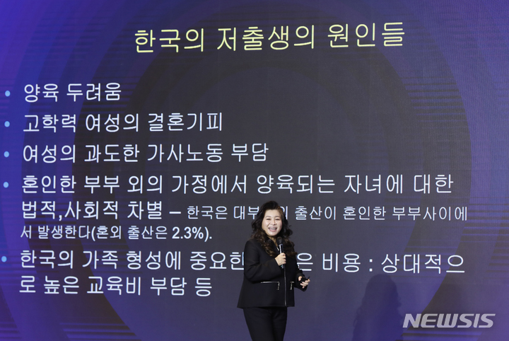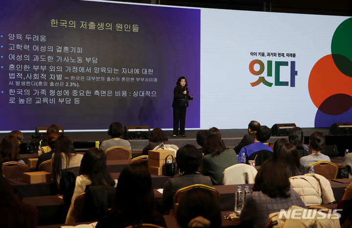 精神健康医学科の医師であるオ・ウニョン博士が13日、ソウル市内のCOEXで開催された「低出産時代、未来に向けた開かれた共感カンファレンス」招待講演で、「ともに行う育児の力、オープン・パートナーシップ」をテーマに話をした。