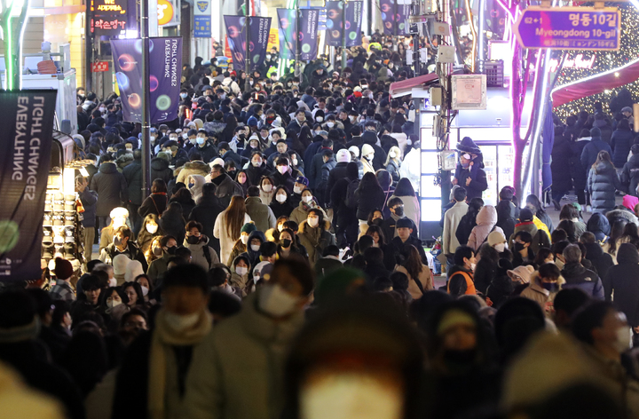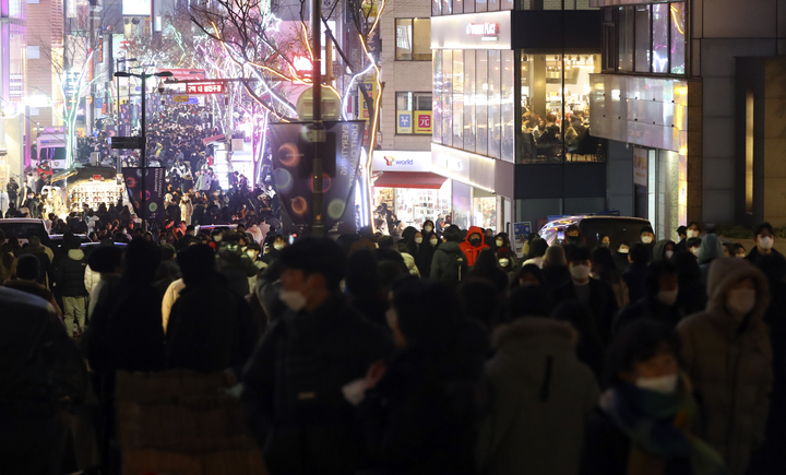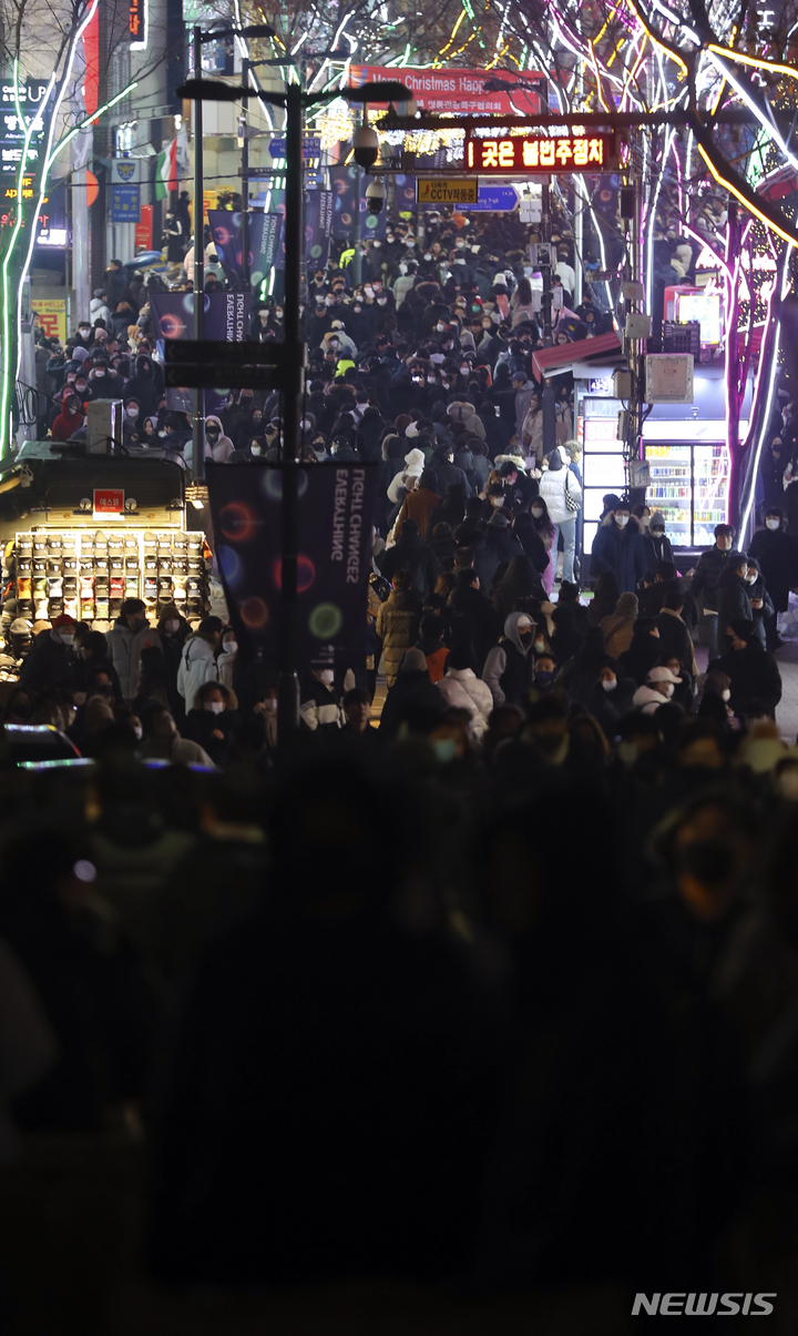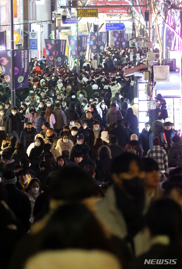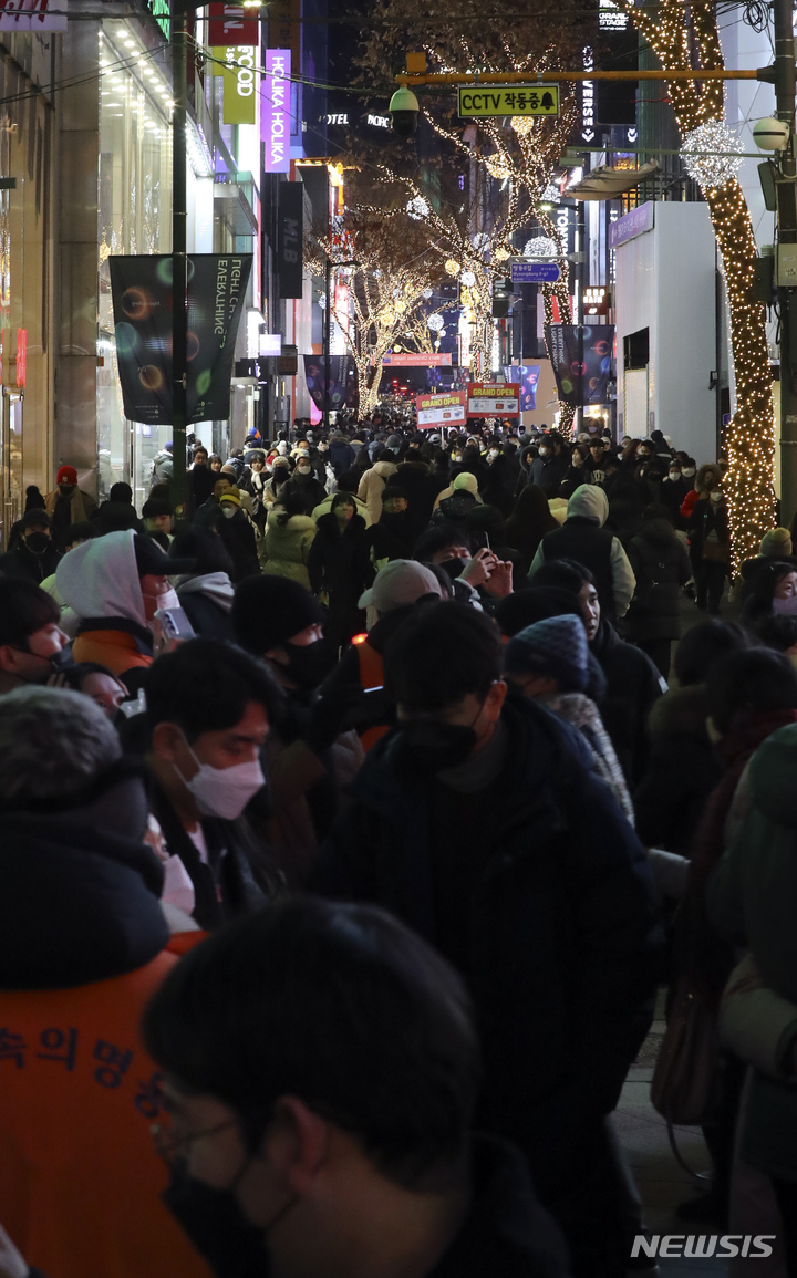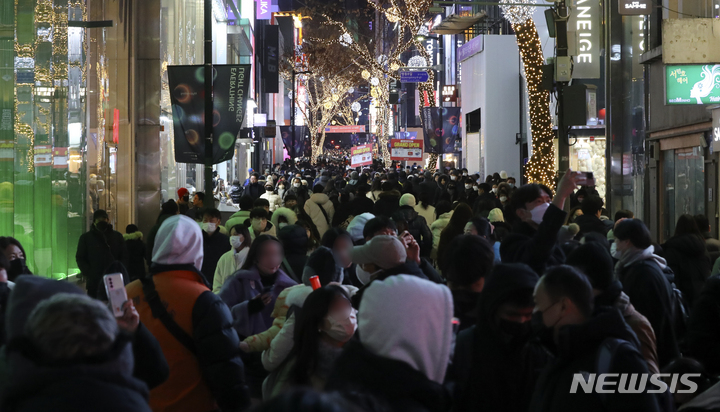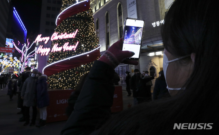 クリスマスイブの24日、ソウル市中区明洞の通りは、訪れた市民で混雑していた。