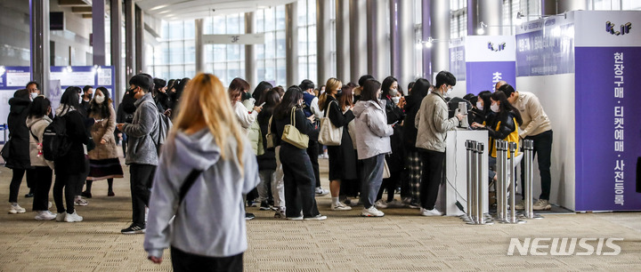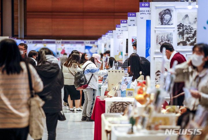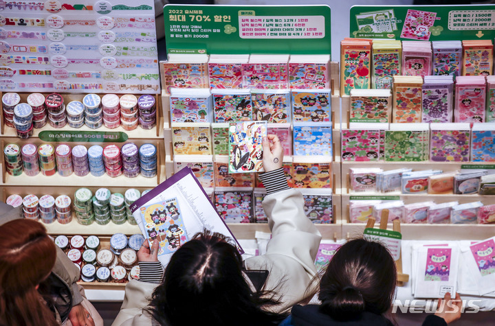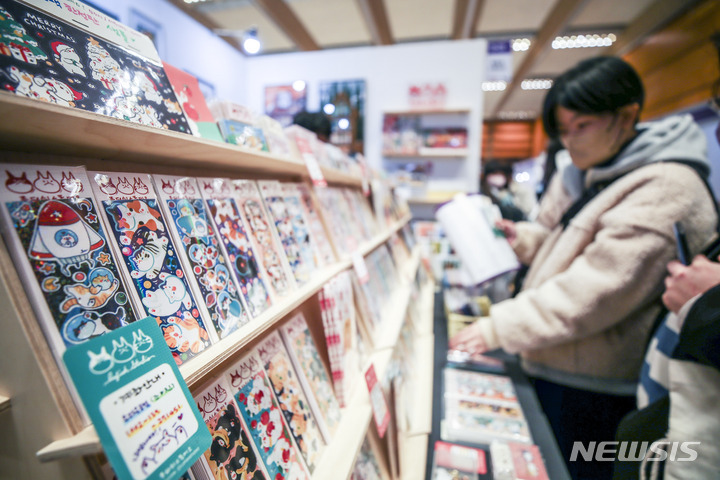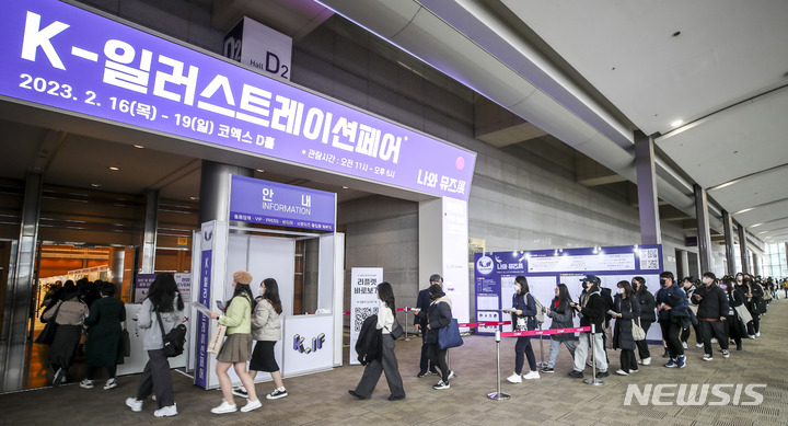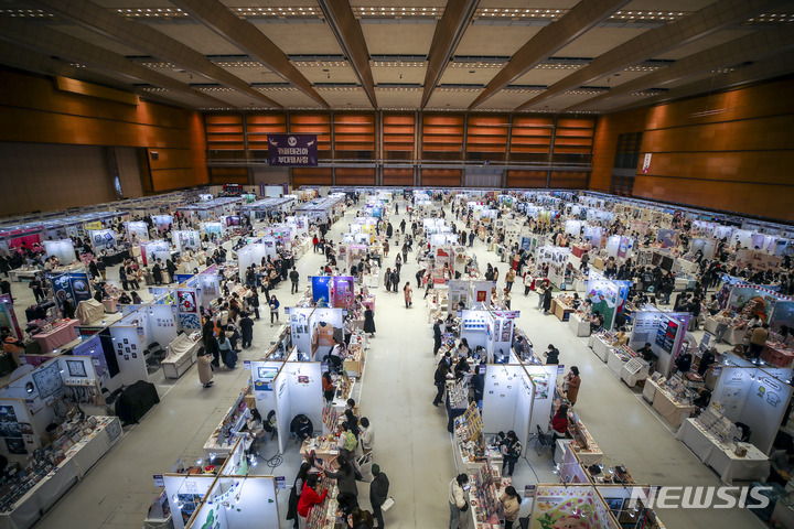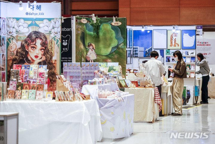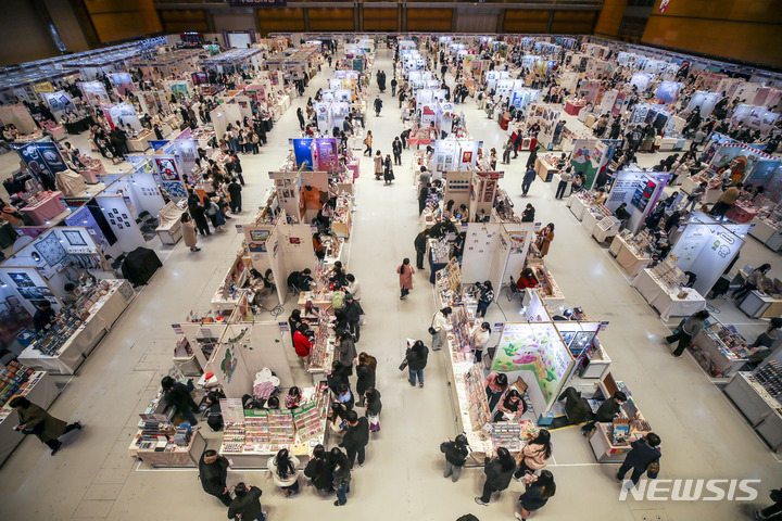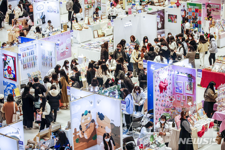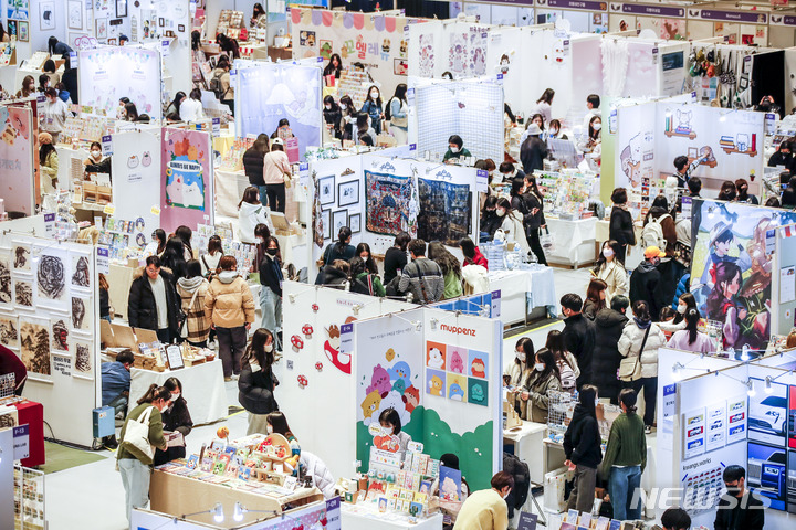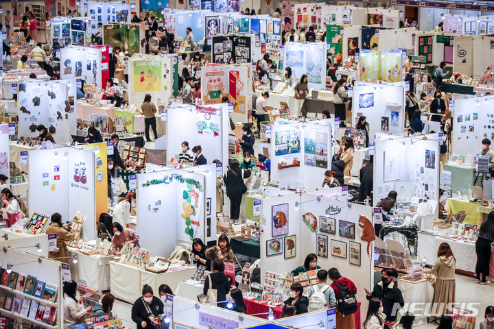 ソウル市江南区のCOEXで16日、K-イラストレーションフェアが開かれ、訪れた人々がイラストグッズを見て回っている。