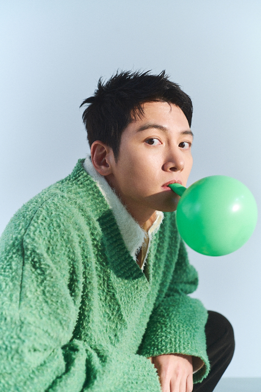 チ・チャンウクは今回のグラビアで、鮮やかなグリーンのニットを感性的に着こなしており、目を引く。また、シックな表情を浮かべ、小物の風船をナチュラルに使用し、自分ならではの魅力を振りまいた。