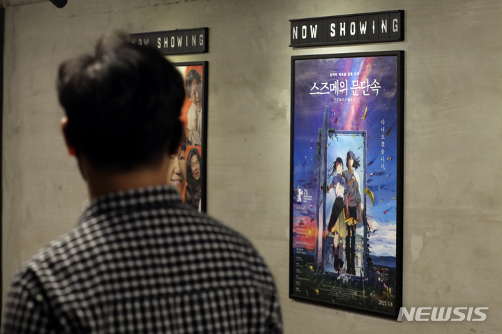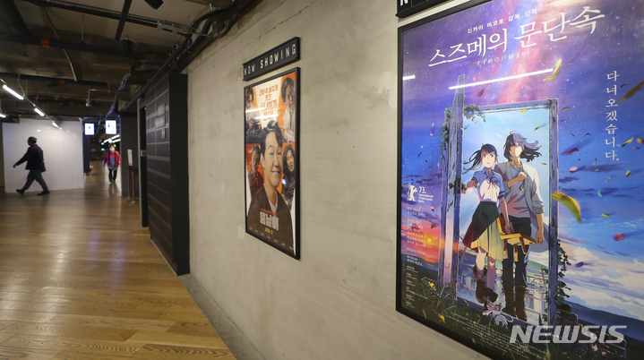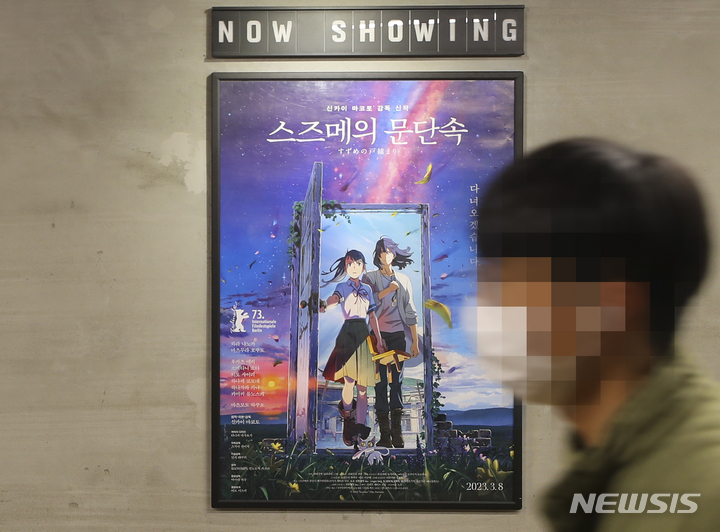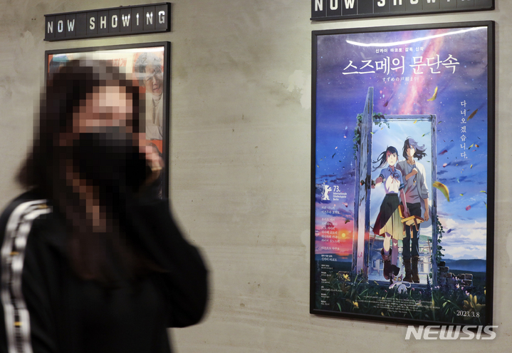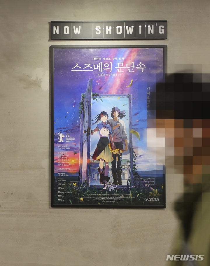 日本のアニメ映画『すずめの戸締まり』が観客動員数300万人を突破した。『すずめの戸締まり』は27日に観客5万7384人を追加し、公開から20日で通算観客動員数300万人を突破した(302万2210人)。今年韓国で公開された映画のうち、300万人以上が見た作品は『THE FIRST SLAM DUNK』(428万人)と『すずめの戸締まり』の2本で、どちらも日本のアニメーションだ。写真は28日、ソウル市内の映画館にある『すずめの戸締まり』のポスター。