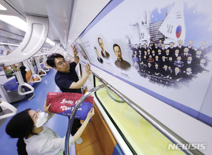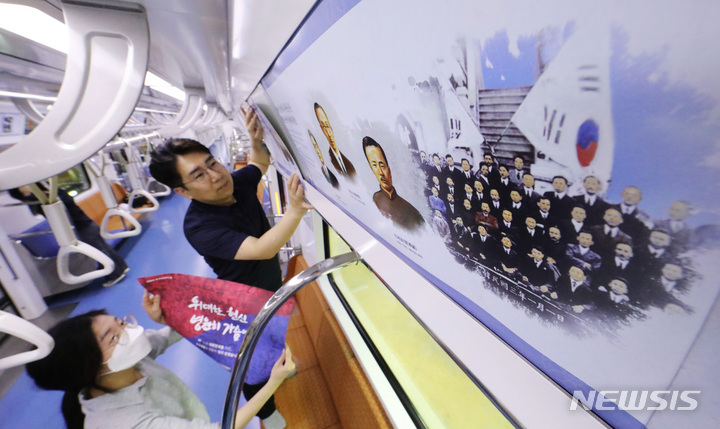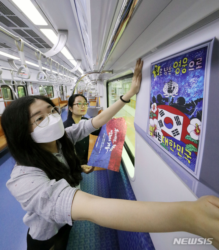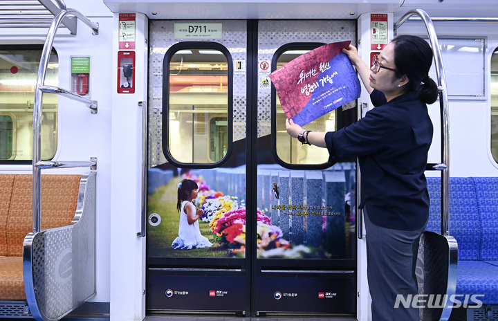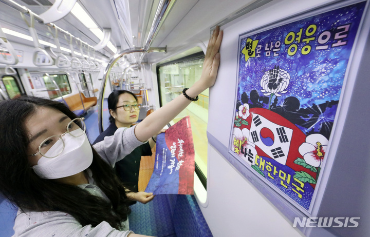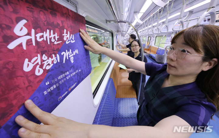「護国報勲の月」と6・25戦争停戦70周年に合わせて、京畿道水原市で31日、新盆唐線の列車内部に独立精神と護国精神についての広報物が取り付けられた。