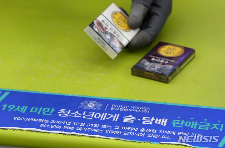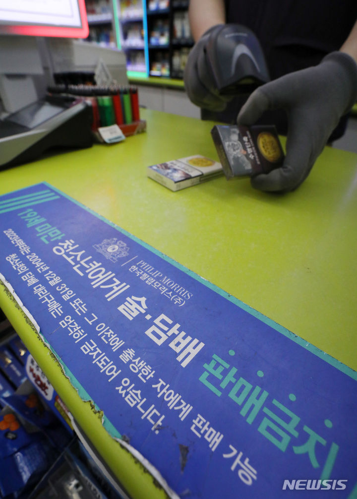【NEWSIS】28日から満年齢統一法が施行されるが、酒・たばこの購入については現行通りの「数え年」適用が維持される。写真は27日午後、ソウル市内のコンビニエンスストアに貼られた青少年への酒・たばこ販売禁止の案内文。