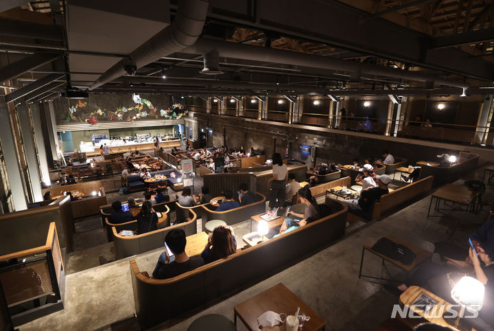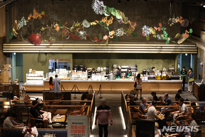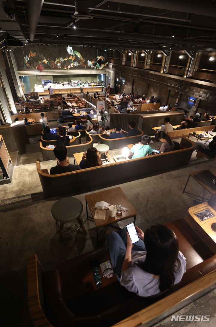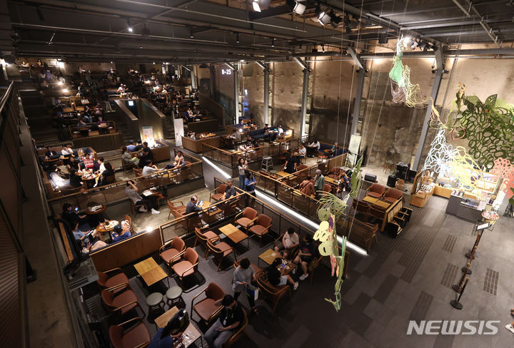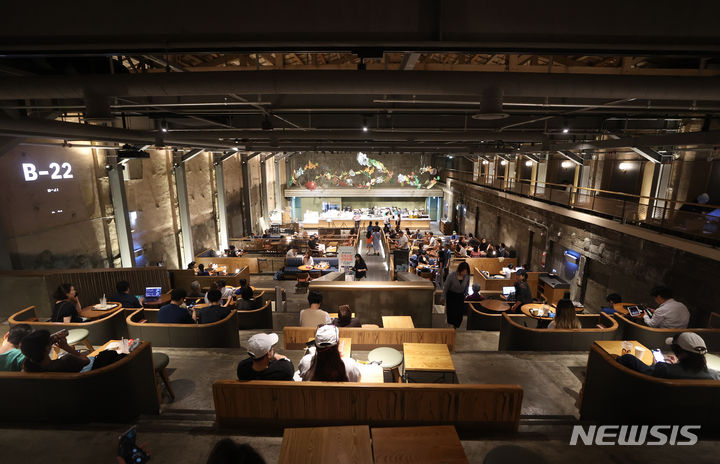 沈滞していた伝統市場が異色のカフェ、楽しい見物などを活用して新たな空間へと生まれ変わっている。ソウル・京東市場に、京東劇場をリモデリングした「スターバックス京東1960店」や、復古電子機器などを展示した「金星電波社」ができてからは、世代を超えて週末だけでも2000-3000人が訪れ、地元商店の期待が高まっている。写真は4日、スターバックス京東1960店の様子。