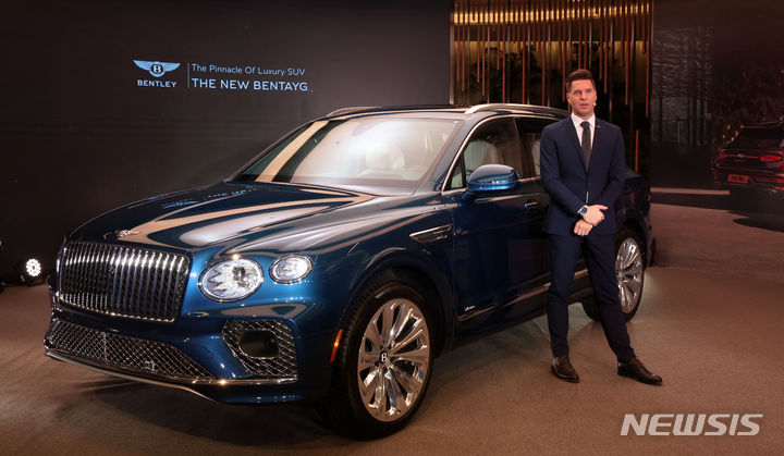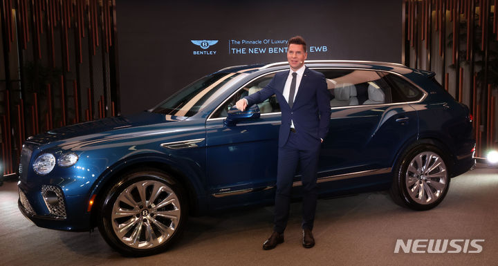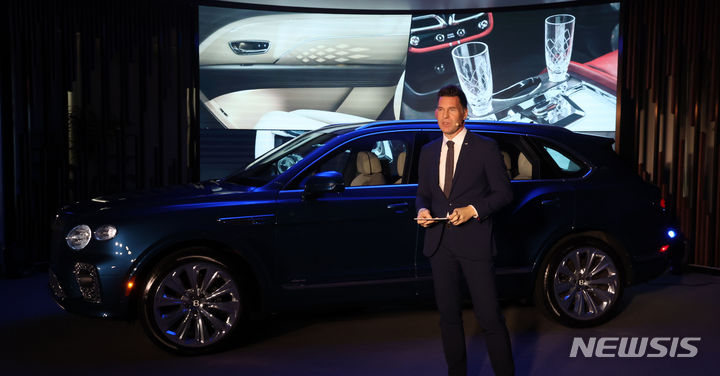 ベントレー・モーターズ・コリアのクリスティアン・シュリック(Christian Schlick)総括常務が12日、ソウル市東大門のベントレータワーで、フラッグシップSUV(スポーツタイプ多目的車)「ベンテイガEWB(Bentayga EWB)」を紹介しているところ。