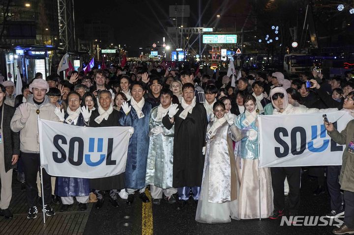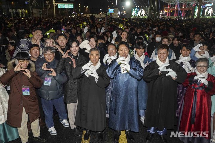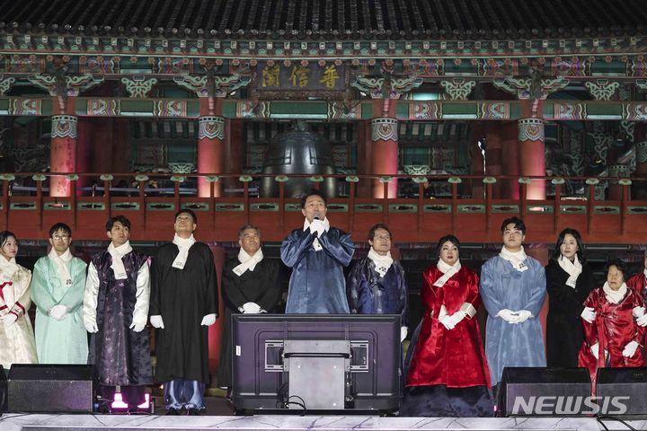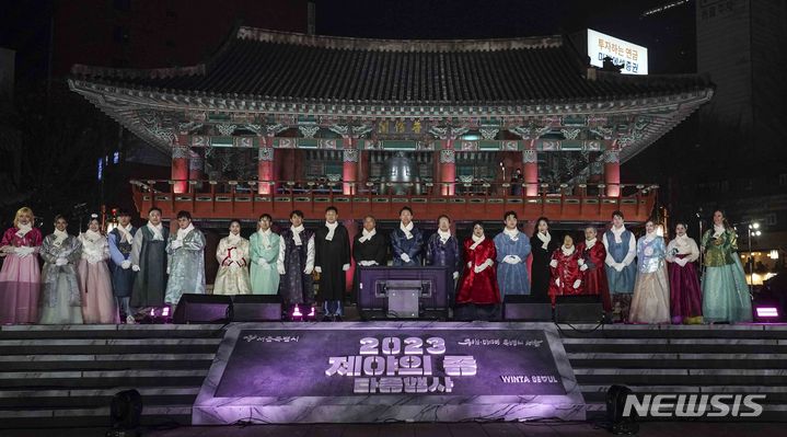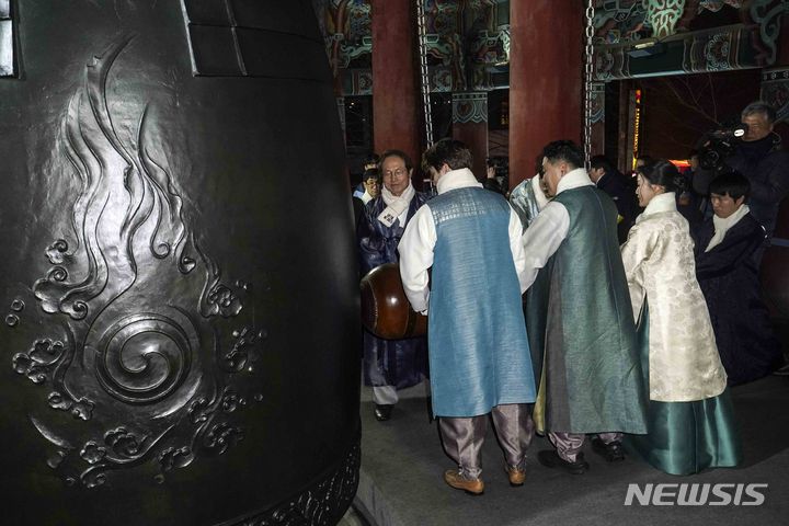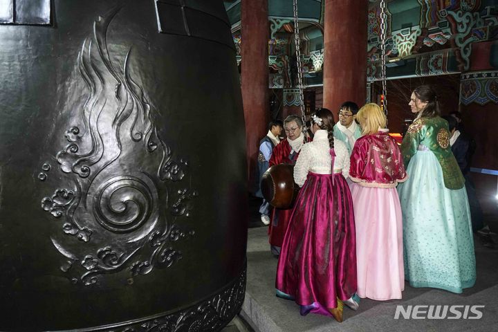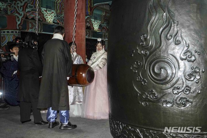 2024年初日となる1月1日午前、ソウル市鍾路区の普信閣で行われた除夜の鐘つきイベントが行われ、市民代表やグローバル・インフルエンサーたちが鐘をついた。
