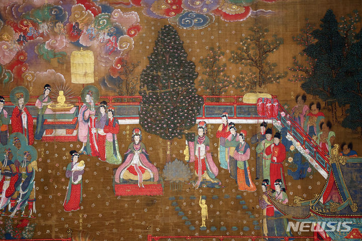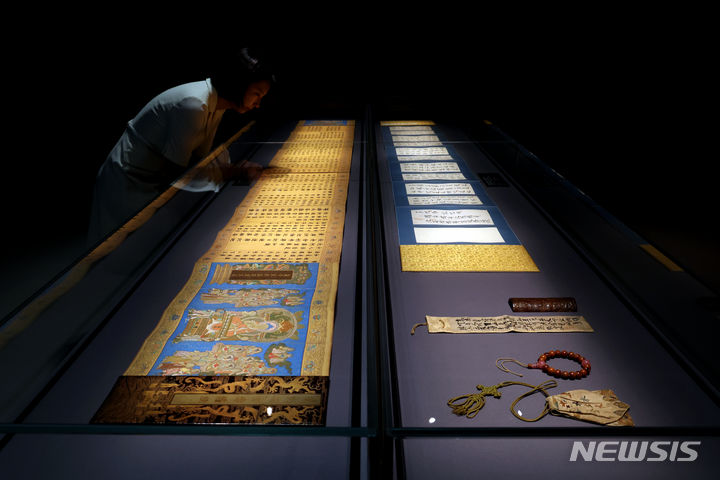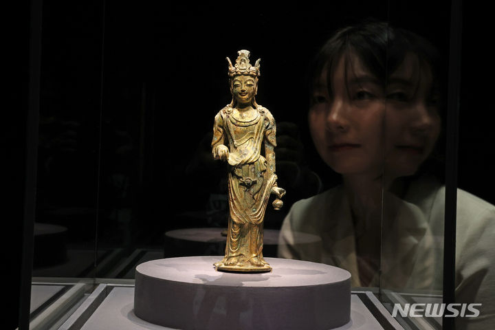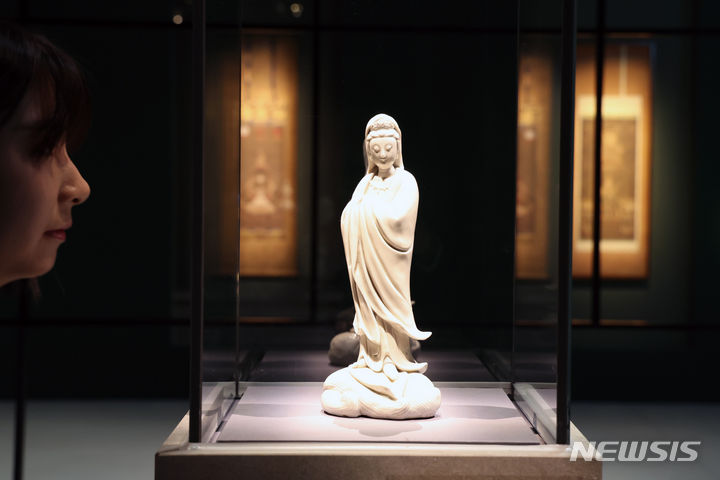 【NEWSIS】湖巌美術館は25日、ジェンダーの観点から東アジア仏教美術に光を当てる企画展「泥に染まらない蓮花のように」のメディア公開を京畿道竜仁市の同館で開催し、およそ90点の仏教美術品を紹介した。