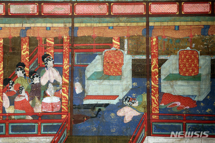 今回の展示は、仏教美術に盛り込まれた女性の願いや苦悩、貢献に注目し、同時代的意味を読み取ることができる良い機会だ。写真は、釈迦牟尼の母親である摩耶夫人が権威ある姿で表現された「釈迦誕生図」。