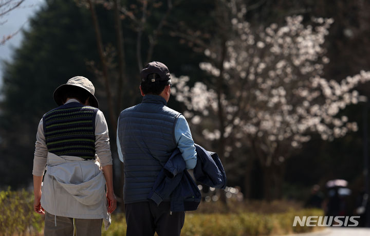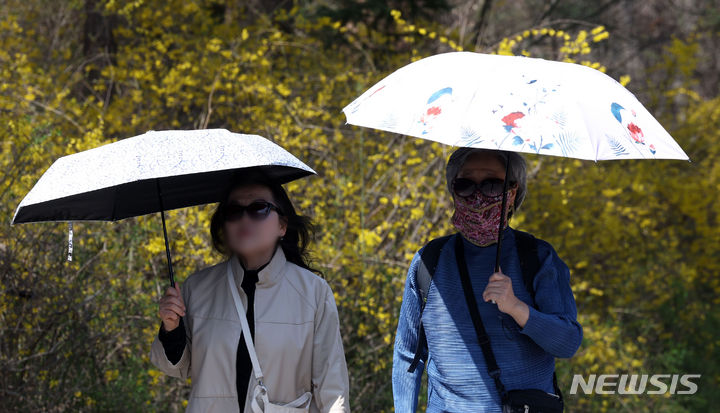 昼間の最高気温が24度まで上昇し、今春最も温かい天気となった2日、半ズボンに半袖という服装でソウル大公園(京畿道果川市)を訪れた外国人観光客の様子。