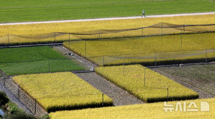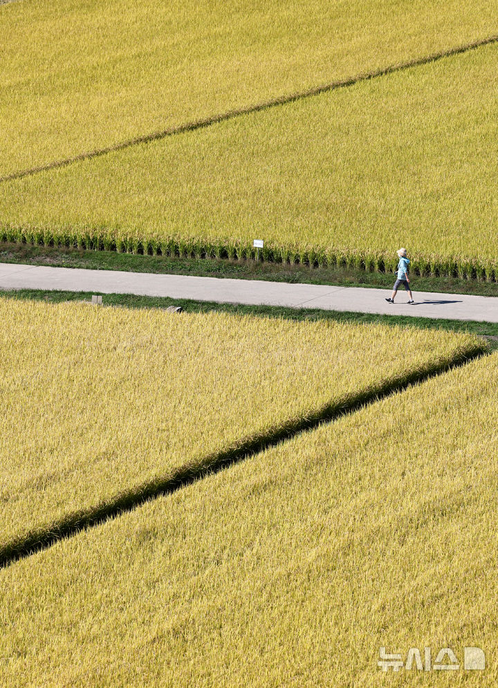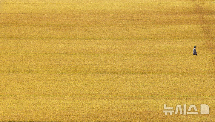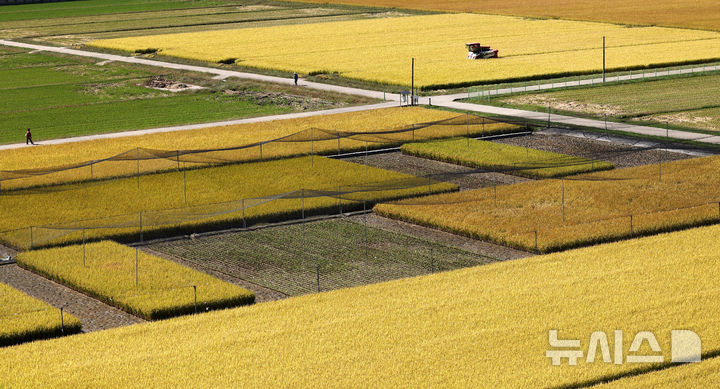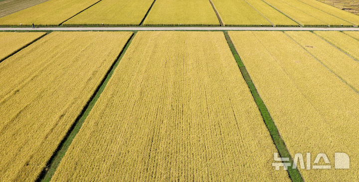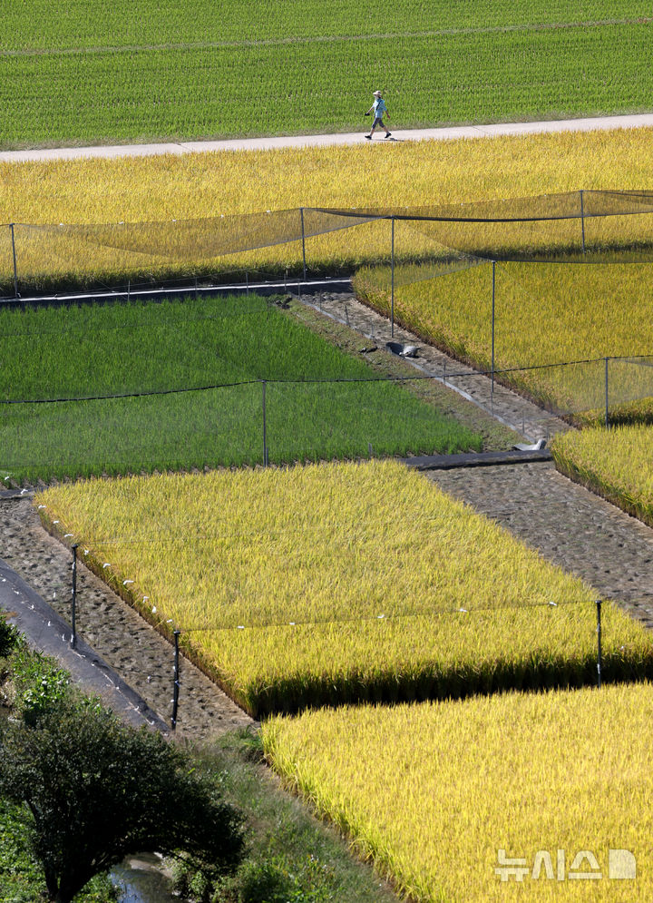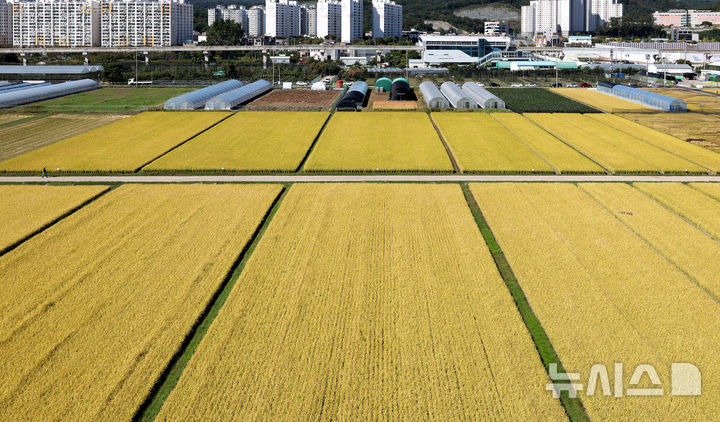 大邱市北区鶴亭洞で10日、収穫を控えた稲が黄金色に輝いている様子。
