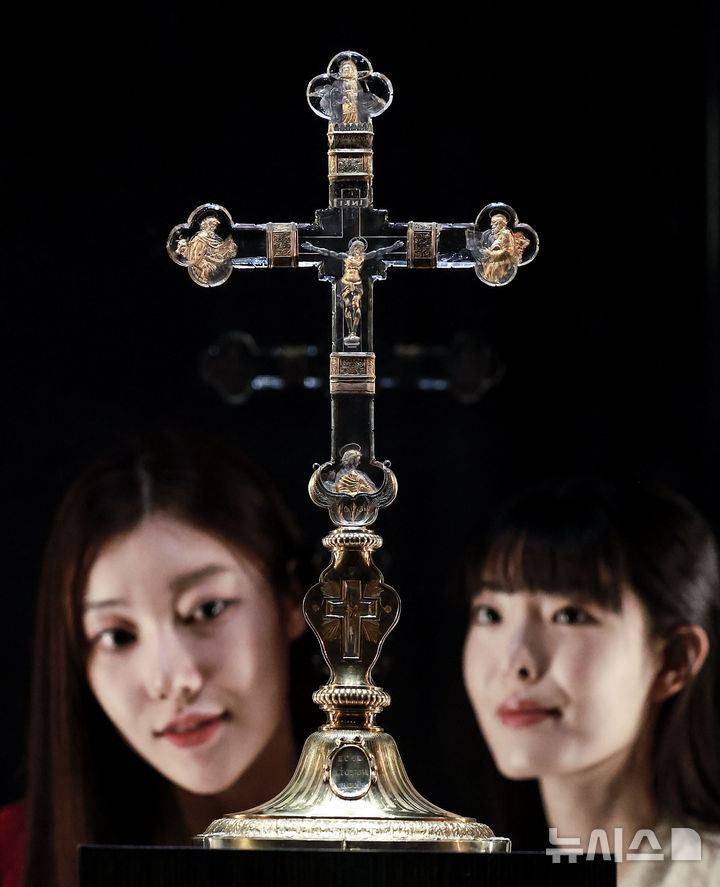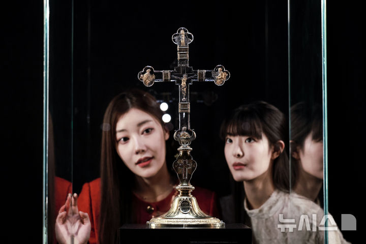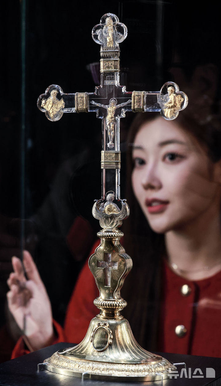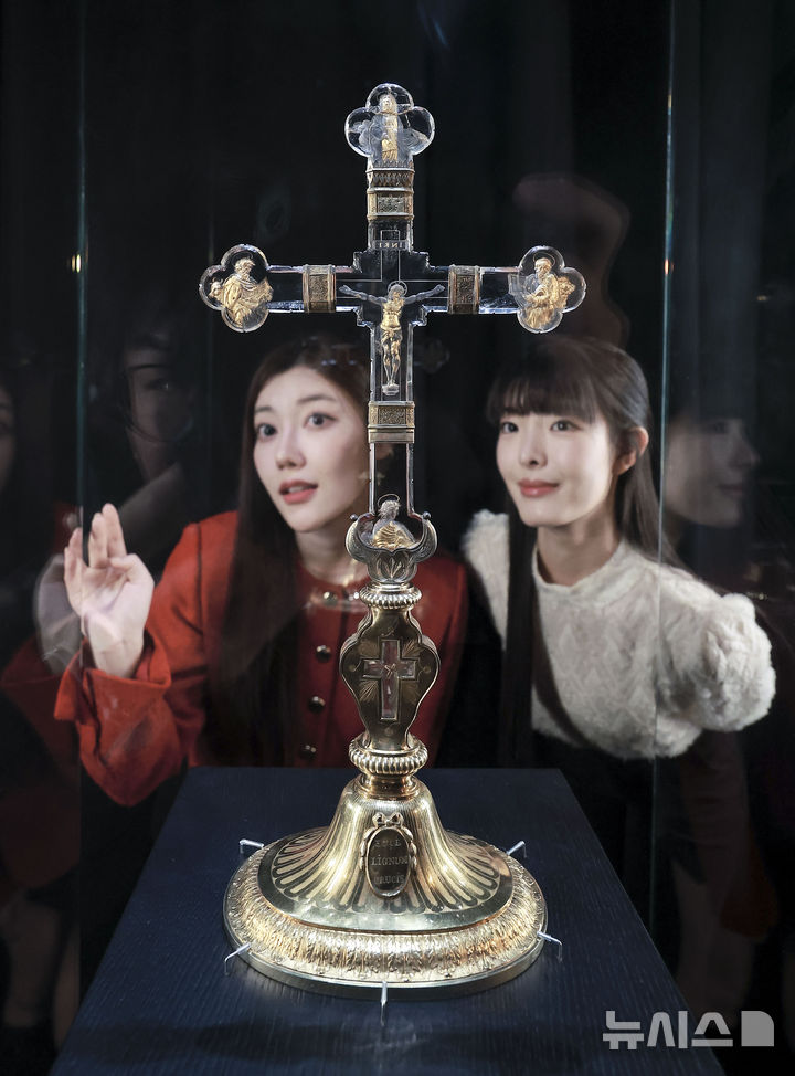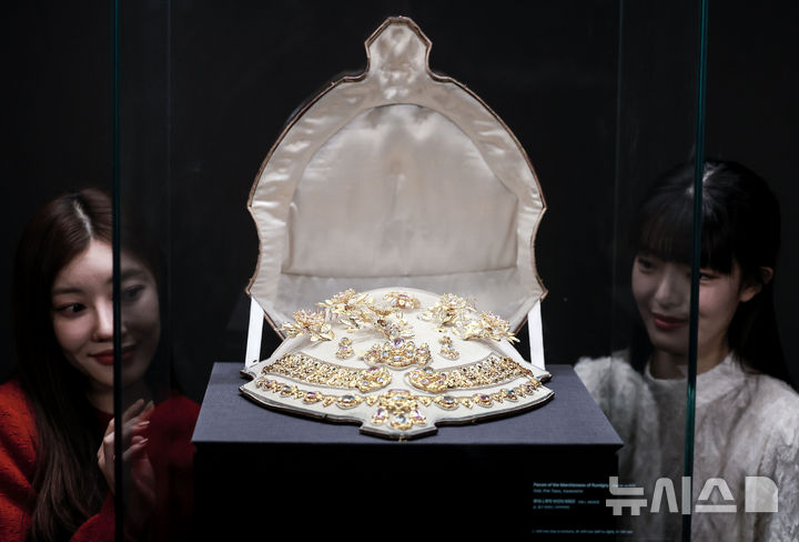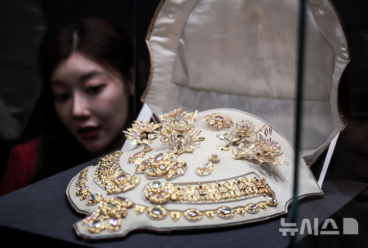 ソウル市松坡区のロッテミュージアムで12日、「The Art of Jewellery:蠱惑の宝石、魅惑の時間」と題する展示会が開催されている中、関係者らがルミニ侯爵夫人の「パリュール」を眺めていた。