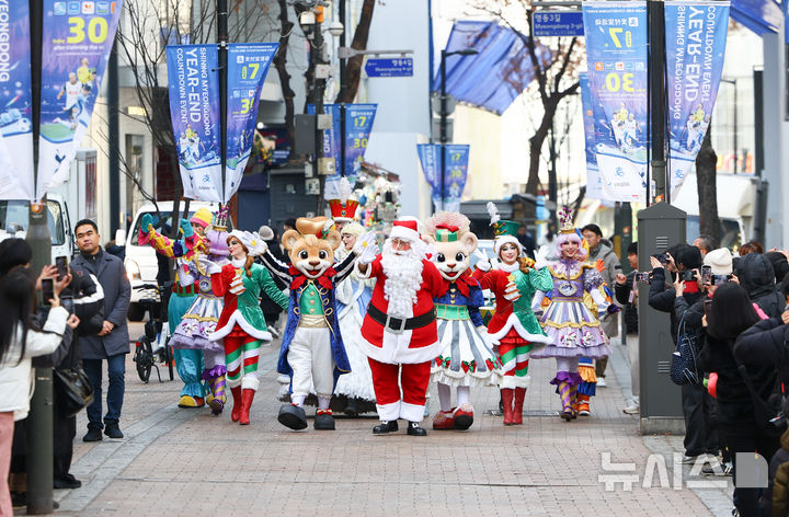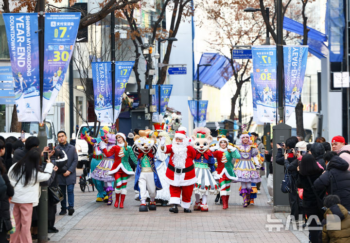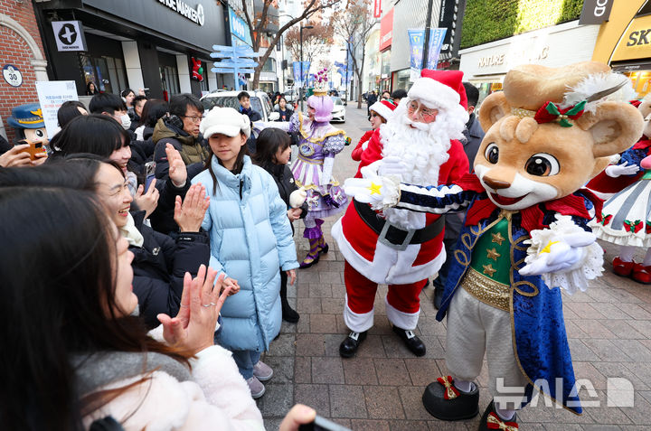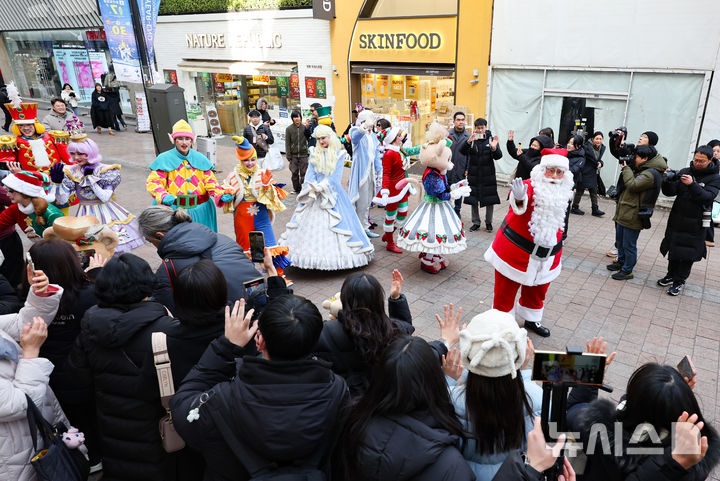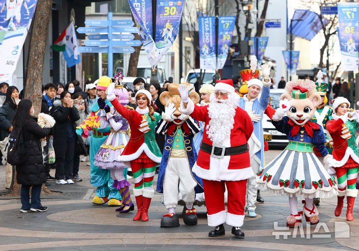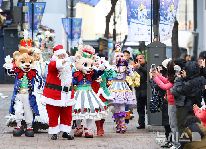 【NEWSIS】ソウル市中区明洞の街頭で23日、エバーランドのアクターがクリスマスパレードを披露している様子。