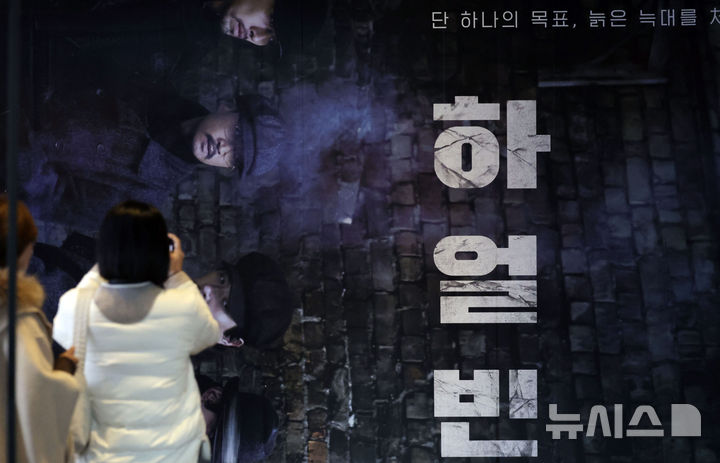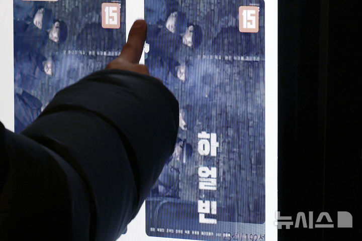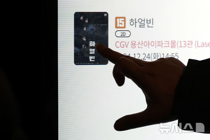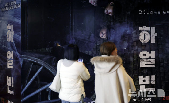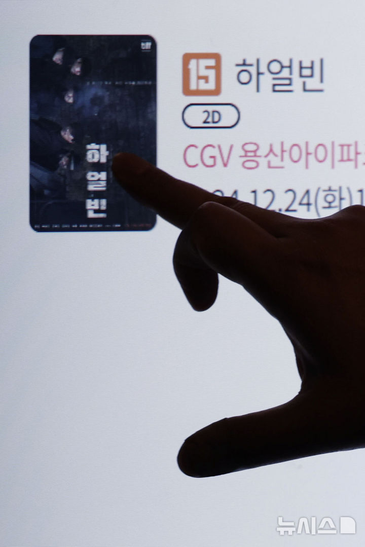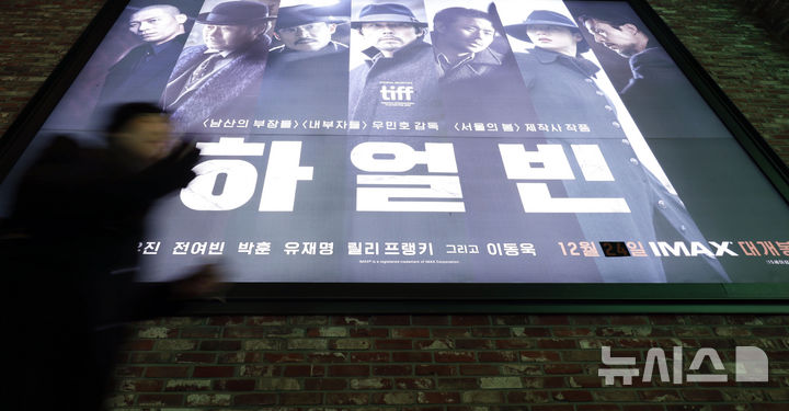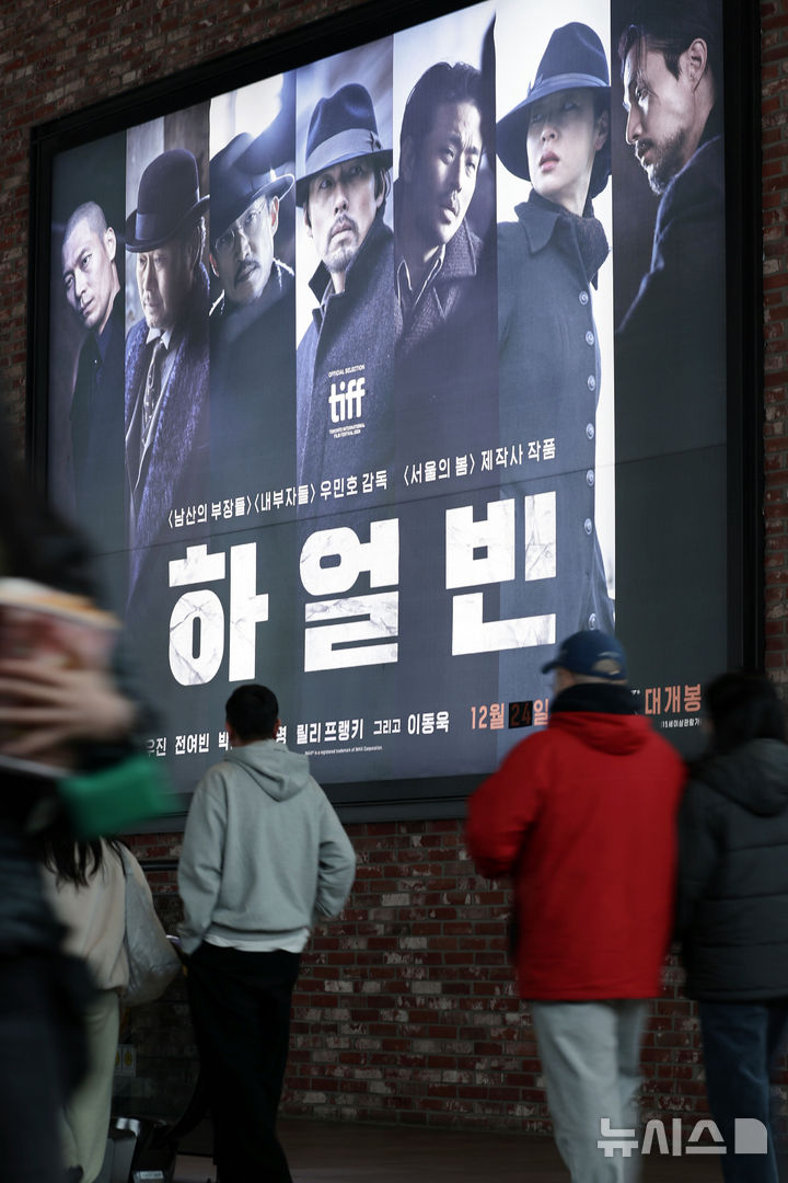 【NEWSIS】ソウルの映画館「CGV竜山アイパークモール店」で24日、映画を見に来た人々が『ハルビン』のPRスクリーン前を行き交っている様子。