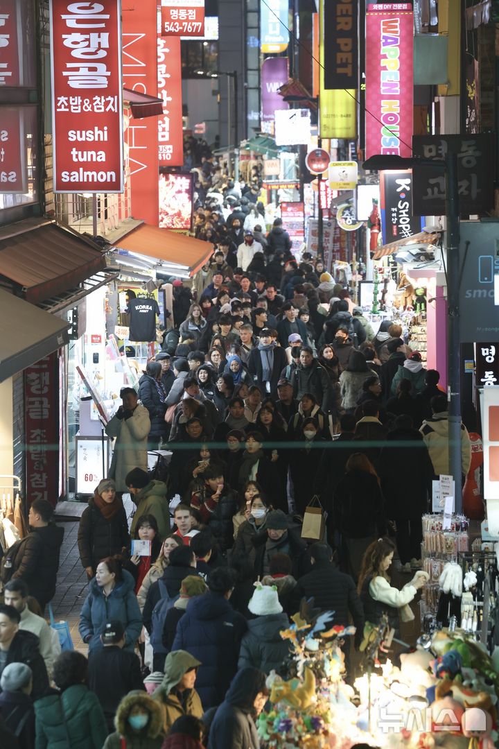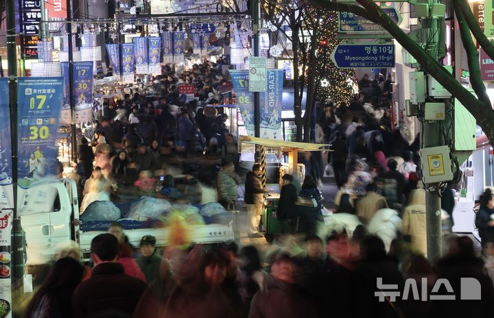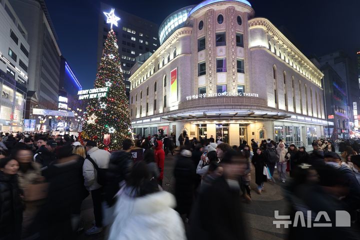 クリスマスイブに当たる24日午後、ソウル市中区の繁華街・明洞は多くの人でにぎわっていた。