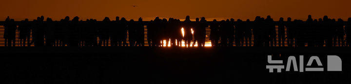 【NEWSIS】1月1日朝、大邱市東区の峨洋鉄橋で、空をオレンジ色に染める初日の出を見る人々。