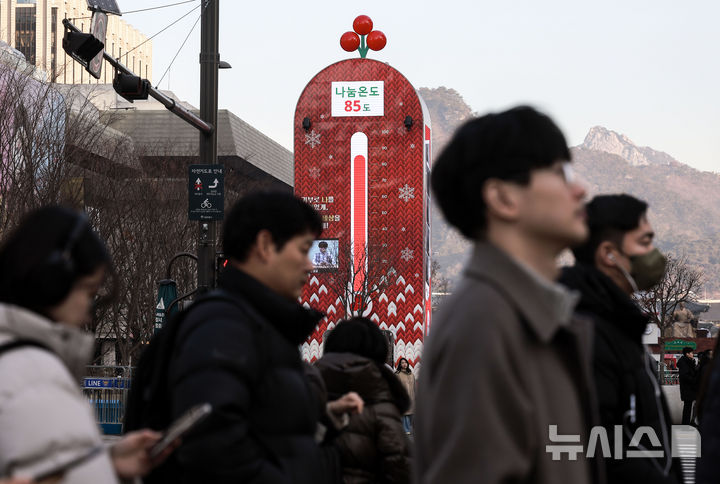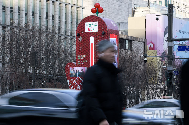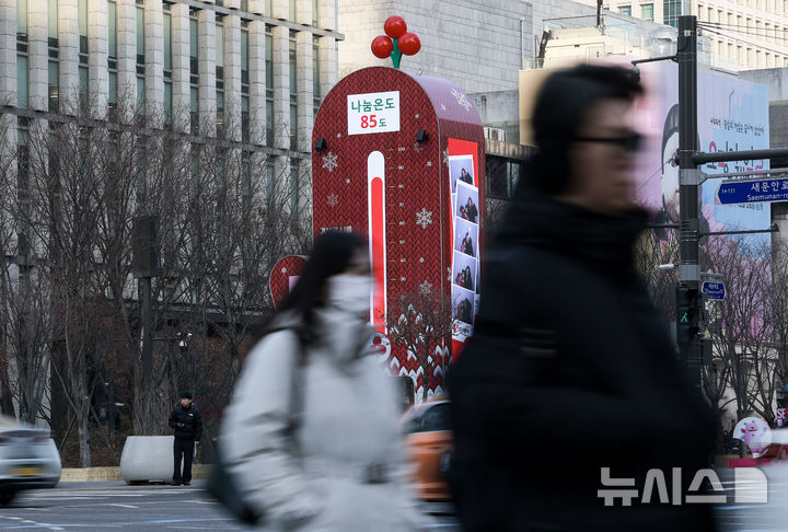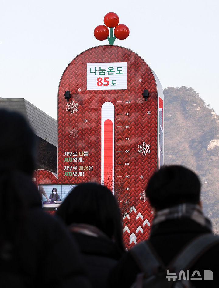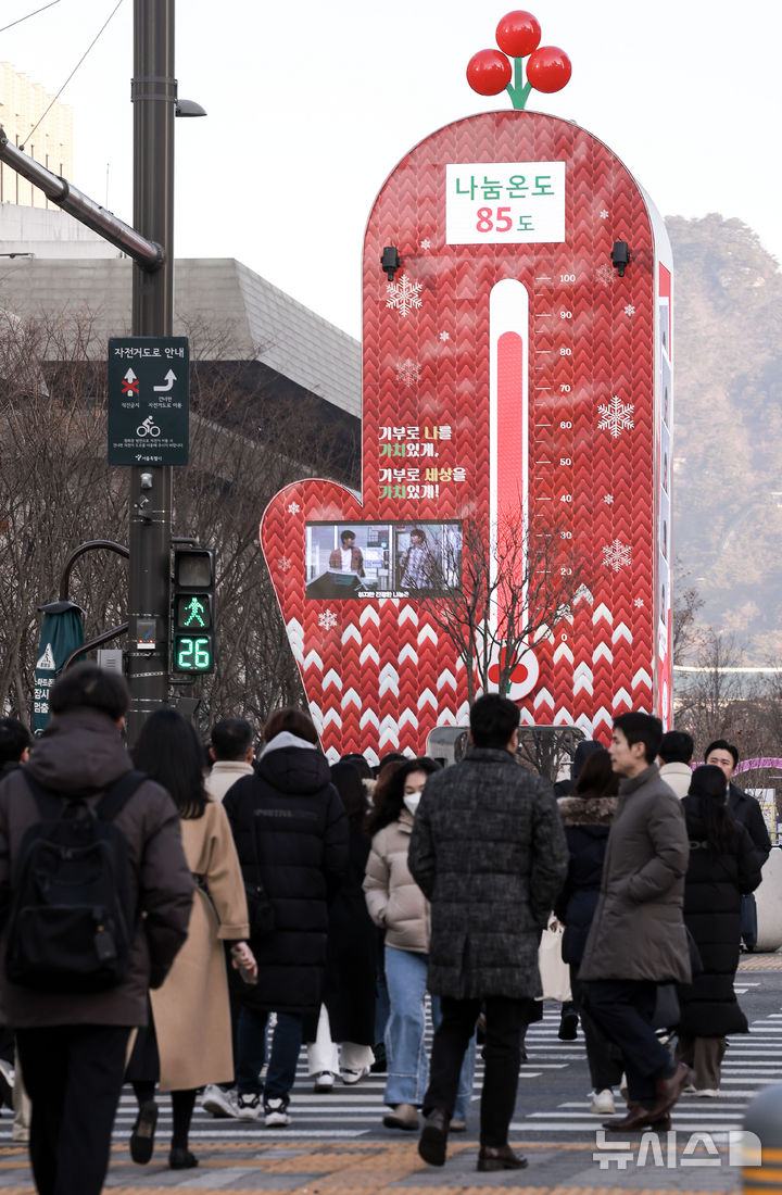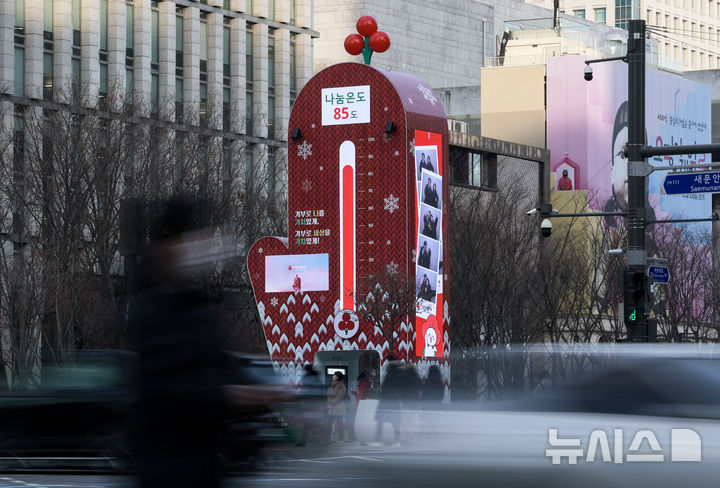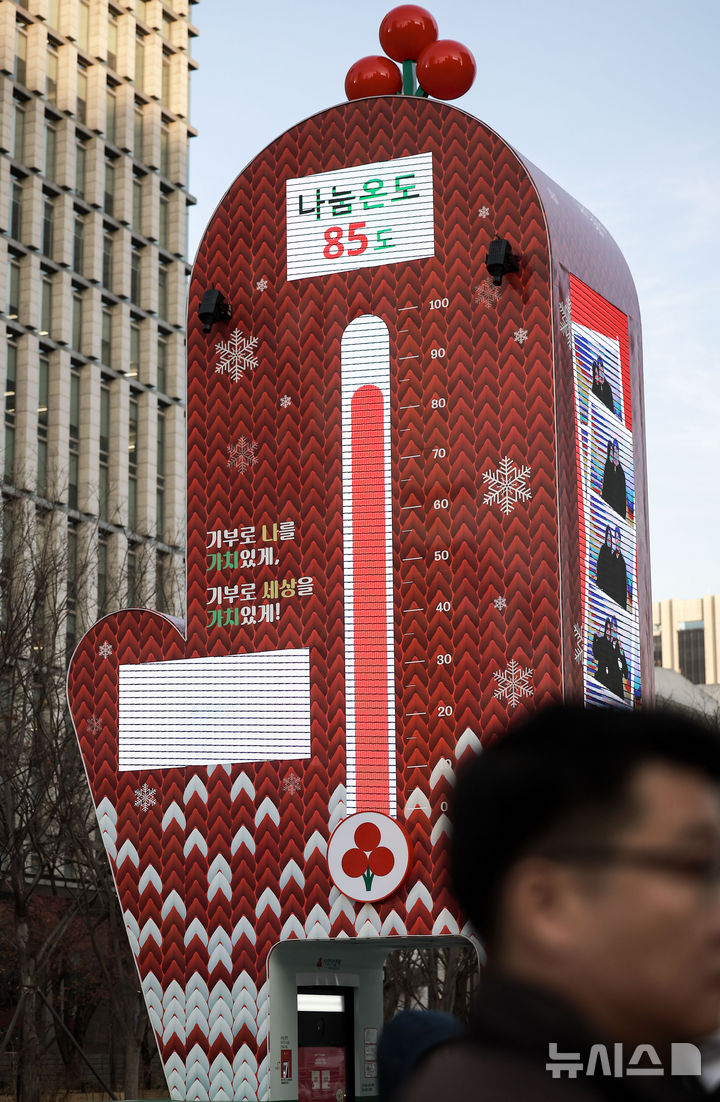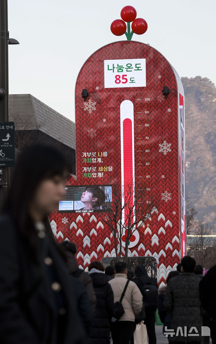 新年を迎え初出勤日に当たる2日、ソウル市鍾路区の世宗路交差点に設置された「愛の温度塔」の分かち合い温度が85度を示している。
