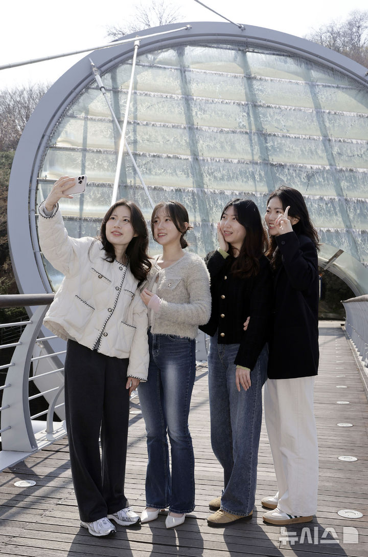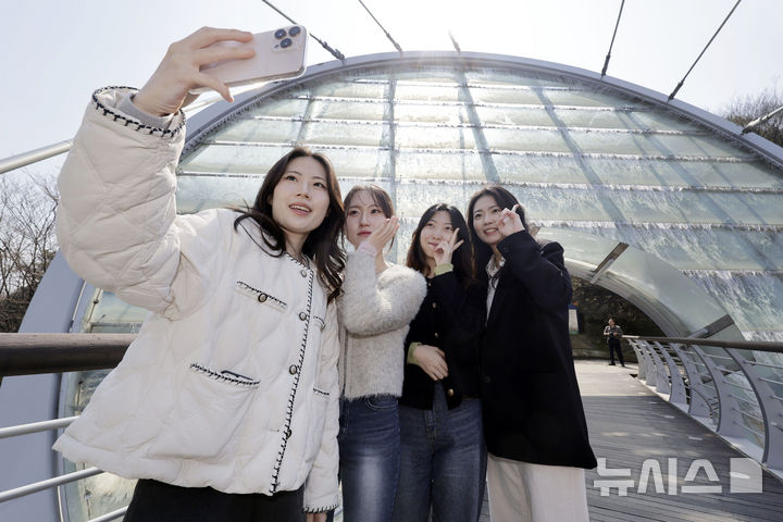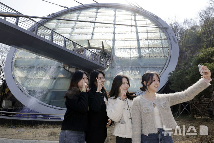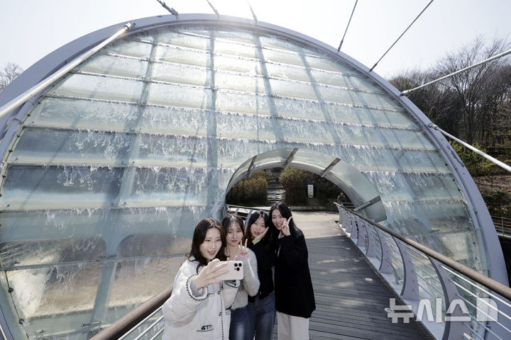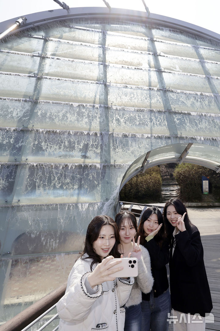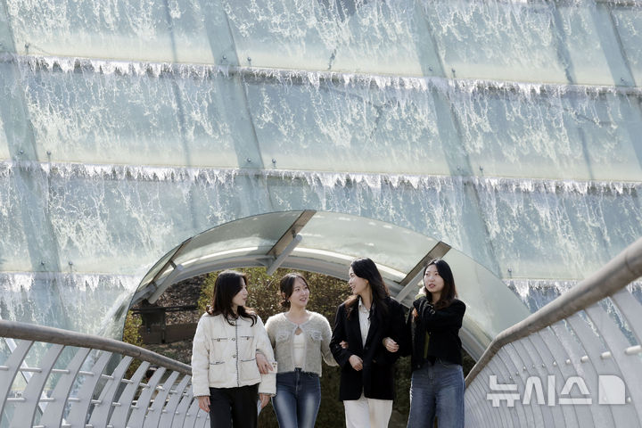 【NEWSIS】3日、ソウル市瑞草区のアクアアート陸橋にあるウォータースクリーンが稼働している様子。