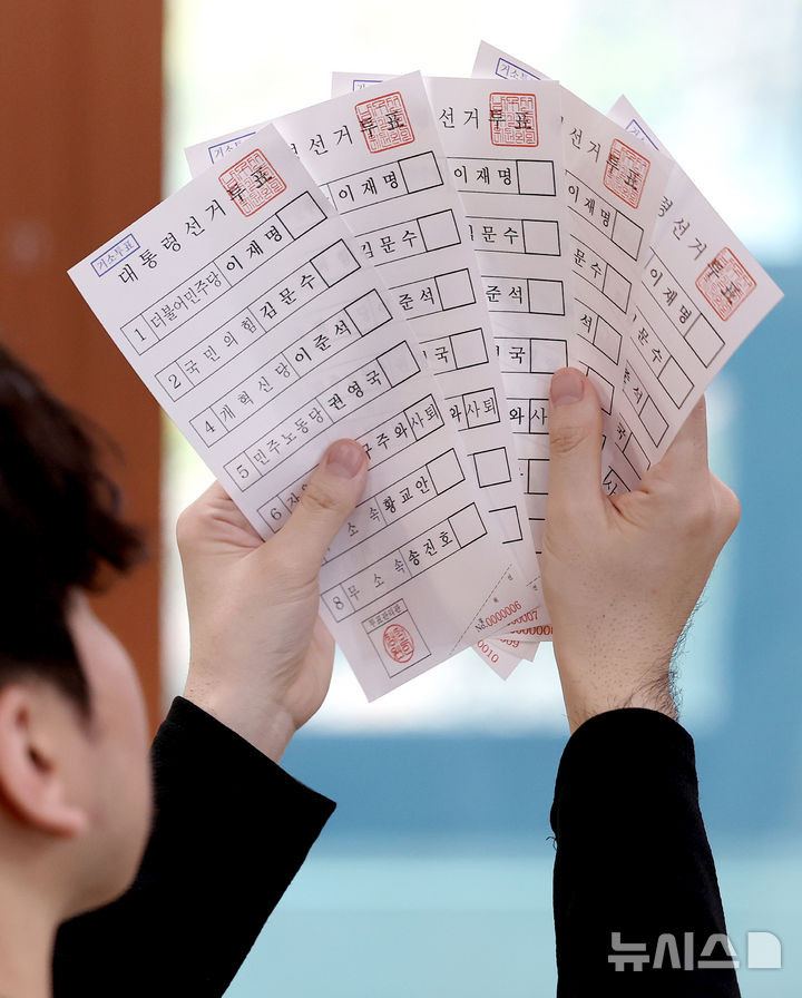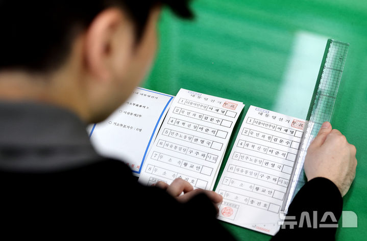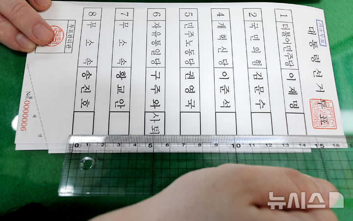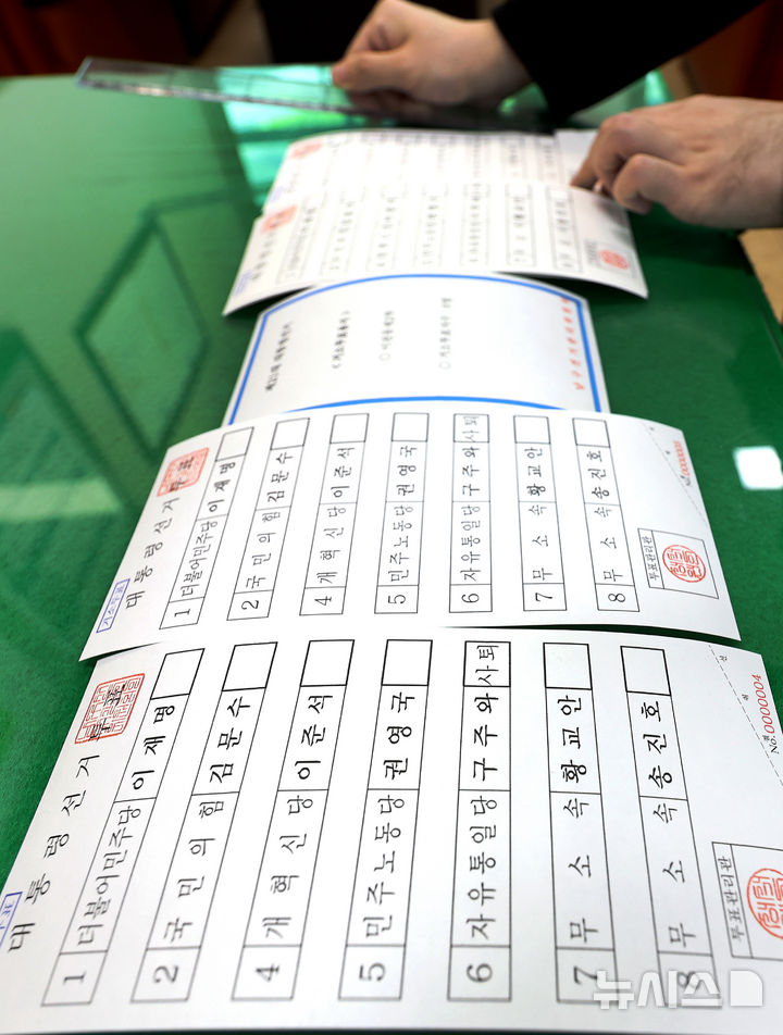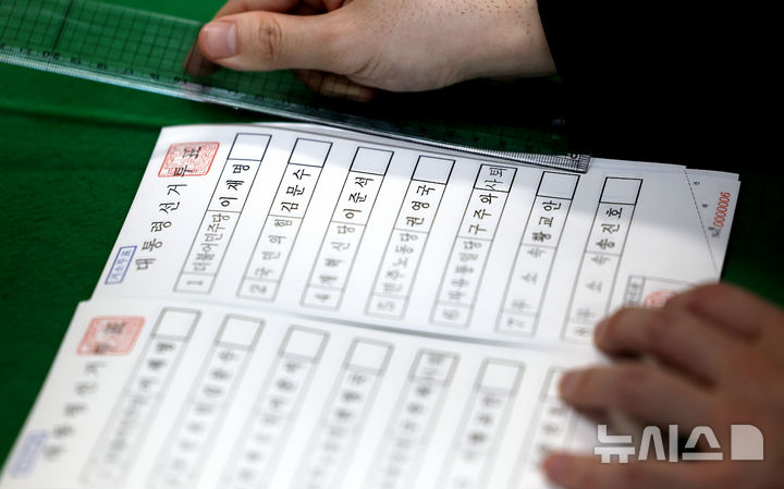 【NEWSIS】ソウル市陽川区の陽川区選挙管理委員会で21日、関係者らが第21代韓国大統領選挙の「居所投票用紙」を印刷しているところ。居所投票は、艦艇で長期間生活している軍人など、投票所から遠く離れた場所にいて直接投票するのが困難な有権者392人のための投票方法だ。