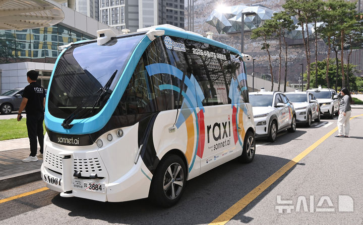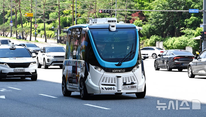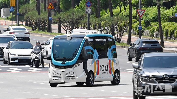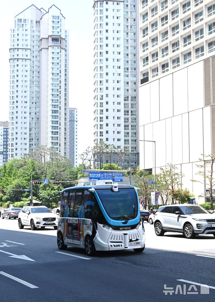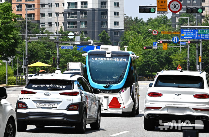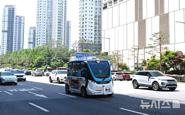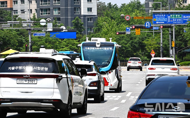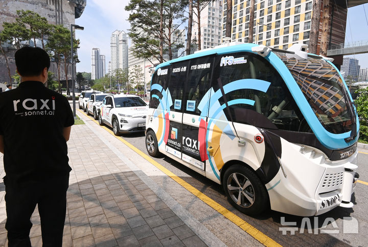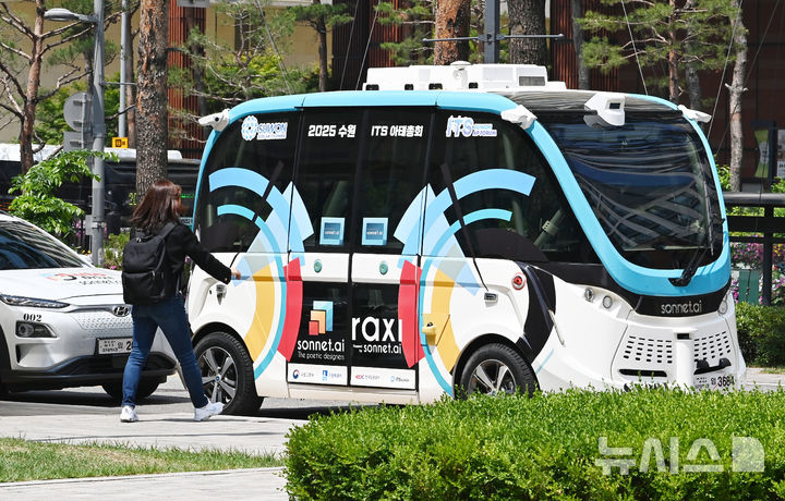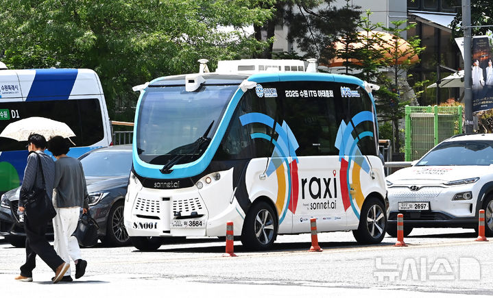 【NEWSIS】2025水原ITS(高度道路交通システム)アジア・太平洋総会まであと二日と迫った26日、京畿道水原市の霊通区光教一帯で、自動運転車両の試運転が行われている様子。