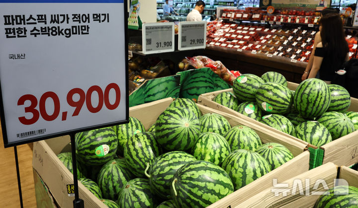 【NEWSIS】23日、ソウル市内の大手スーパーに並んでいるスイカの様子。