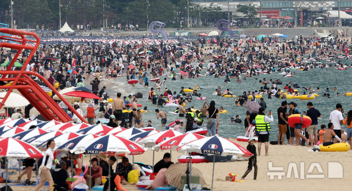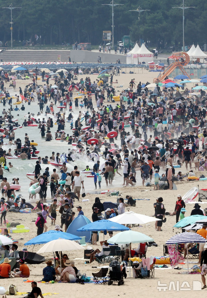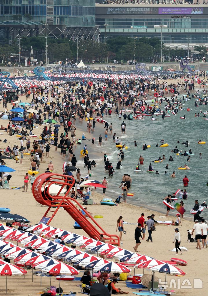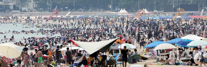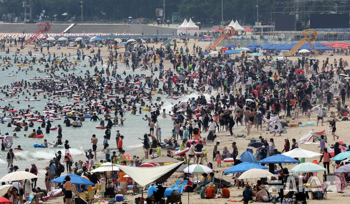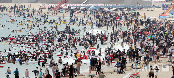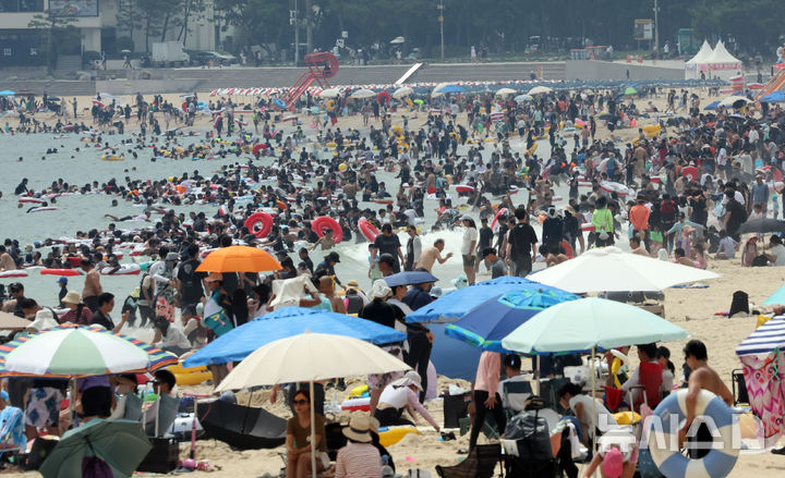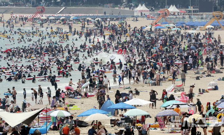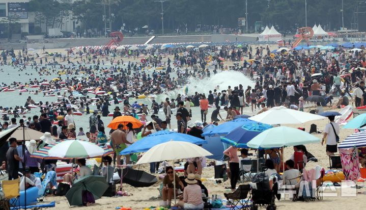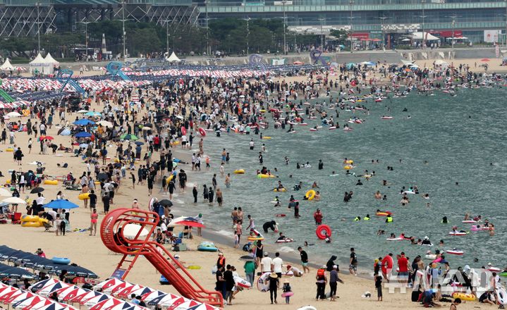 【NEWSIS】夏休みシーズン真っただ中の3日、釜山市海雲台区の海雲台海水浴場は海水浴客でごった返していた。