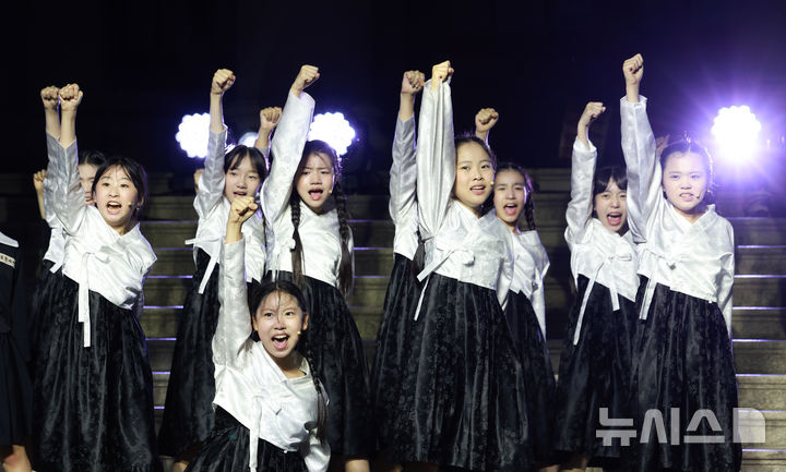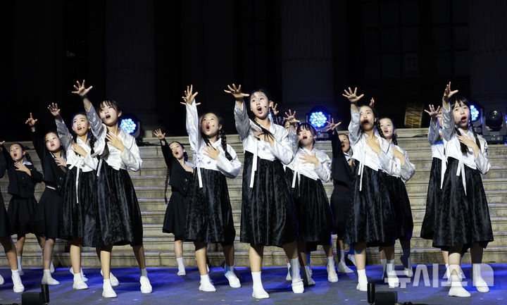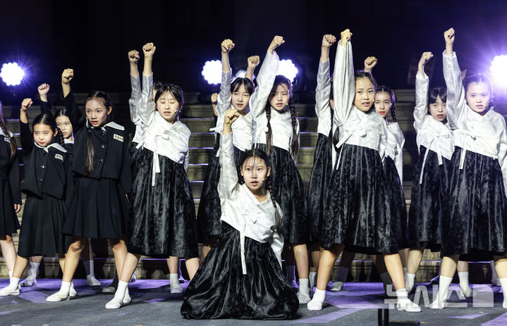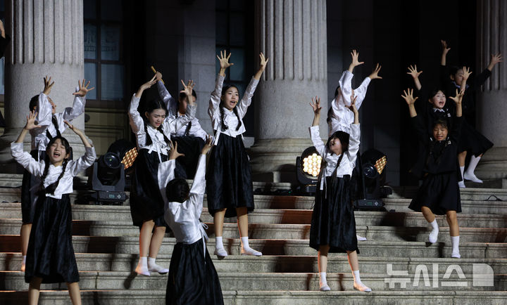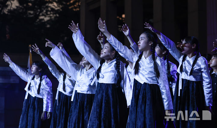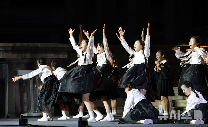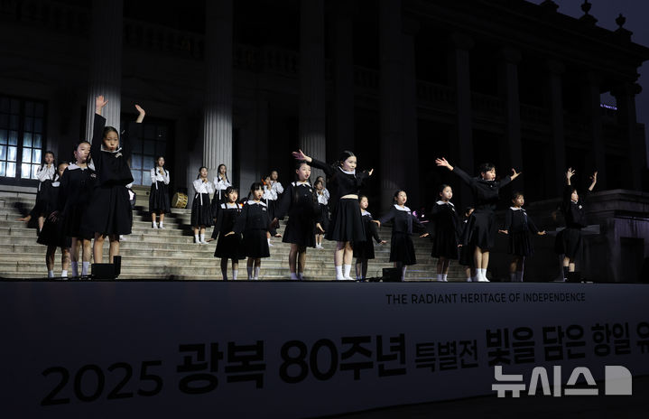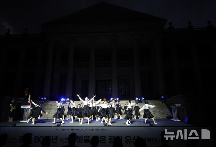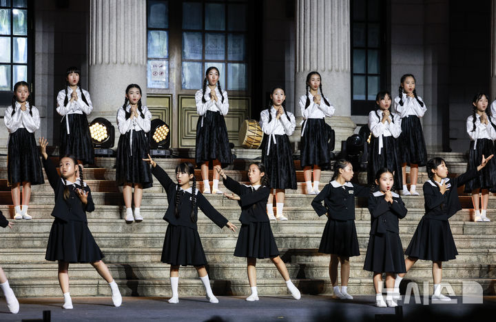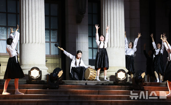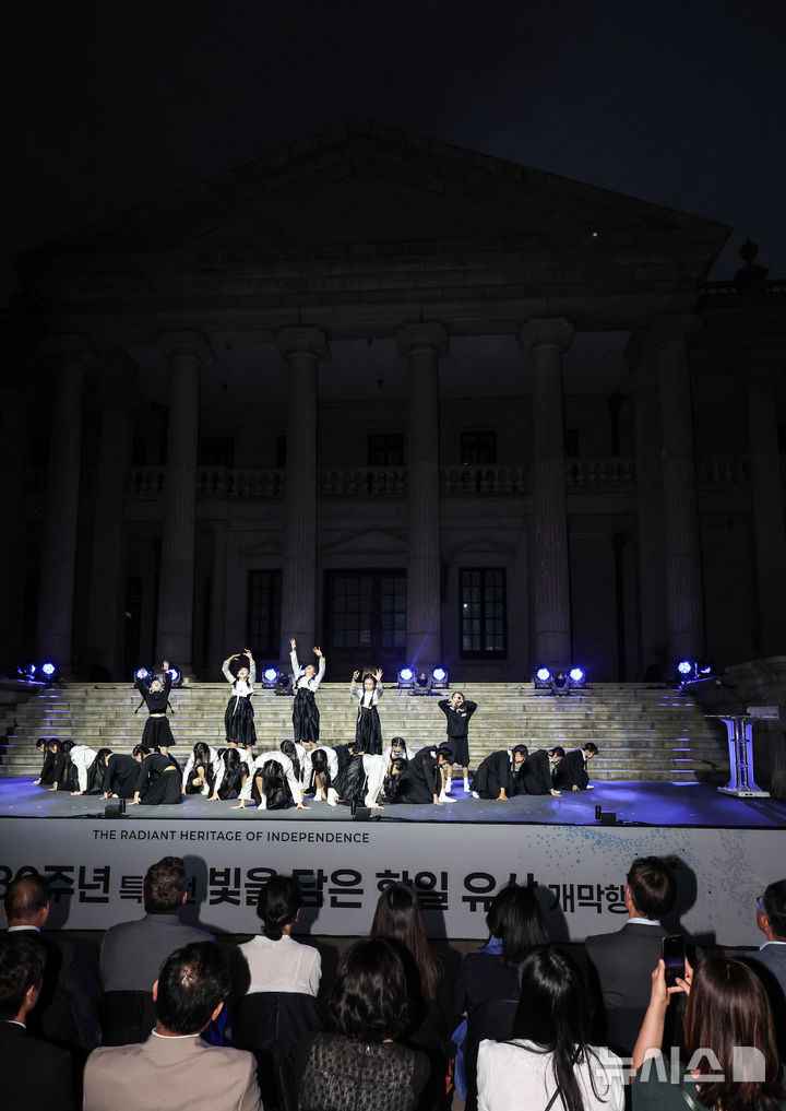 【NEWSIS】11日午後、ソウル市中区の徳寿宮石造殿前で、光復(8月15日、日本による植民地支配からの解放)80周年特別展「光を込めた抗日遺産」開幕行事が行われた。写真はオープニング公演の様子。