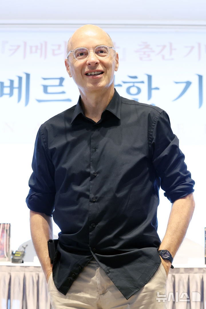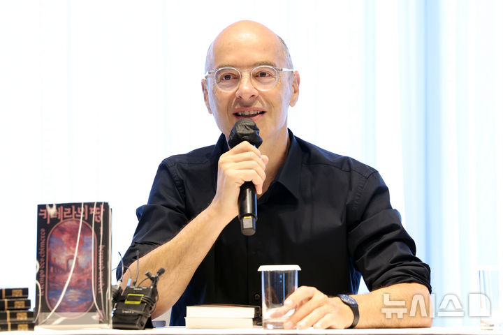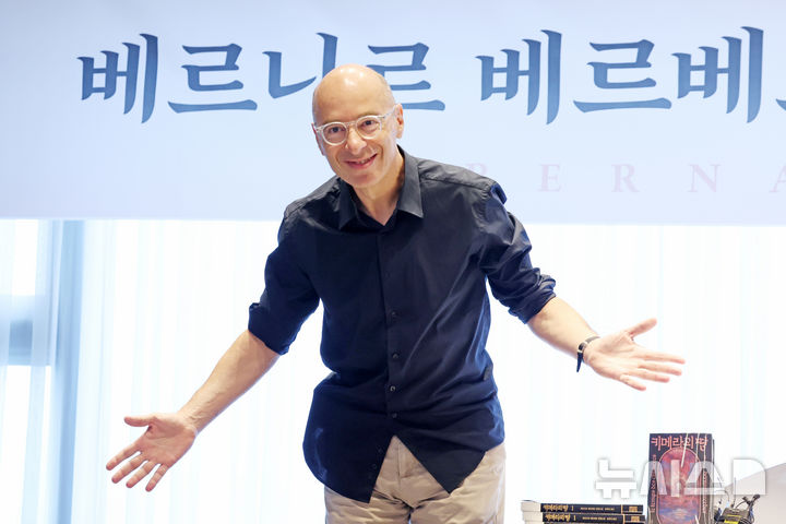 【NEWSIS】作家のベルナール・ウェルベルが20日、ソウル市中区のアンバサダー・ソウル・プルマンホテルで新刊『キメラの地』(Le temps des chimeres)発刊記念記者懇談会を行っているところ。