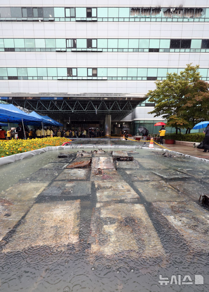 【NEWSIS】28日、鎮火した大田市儒城区の国家情報資源管理院の様子。