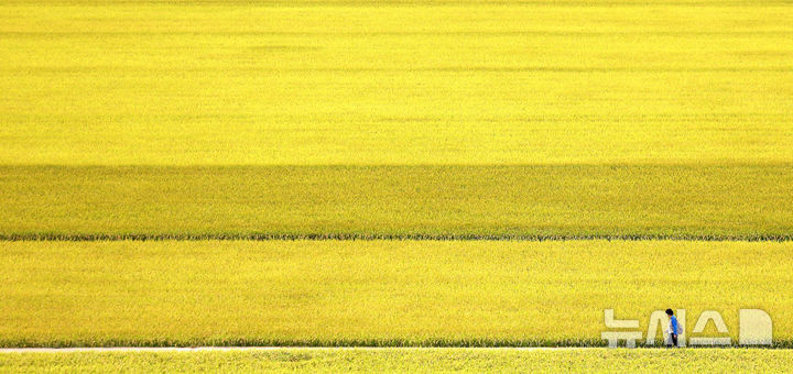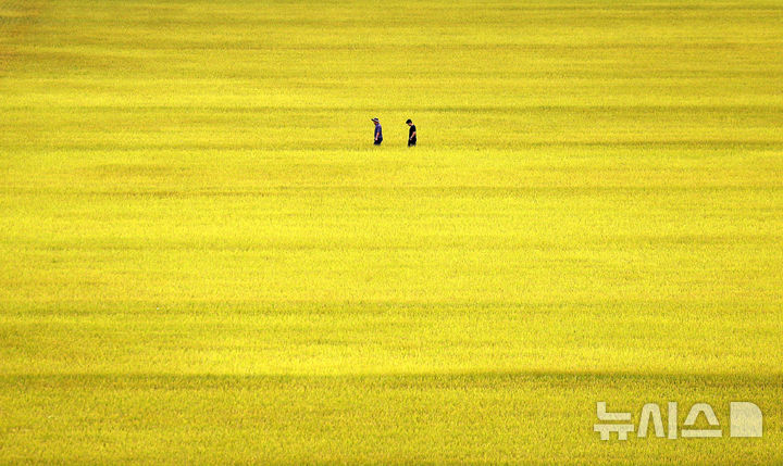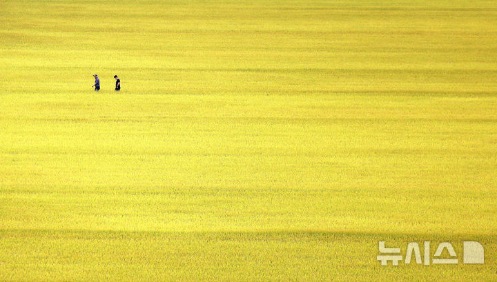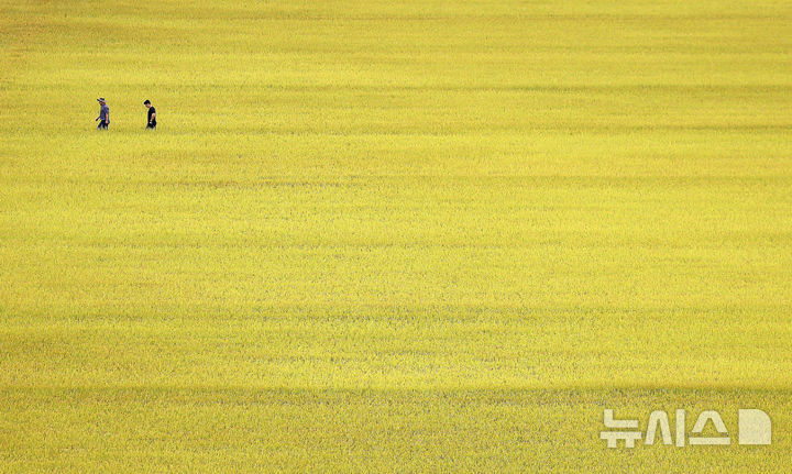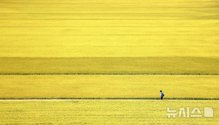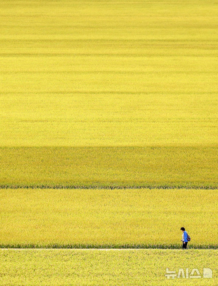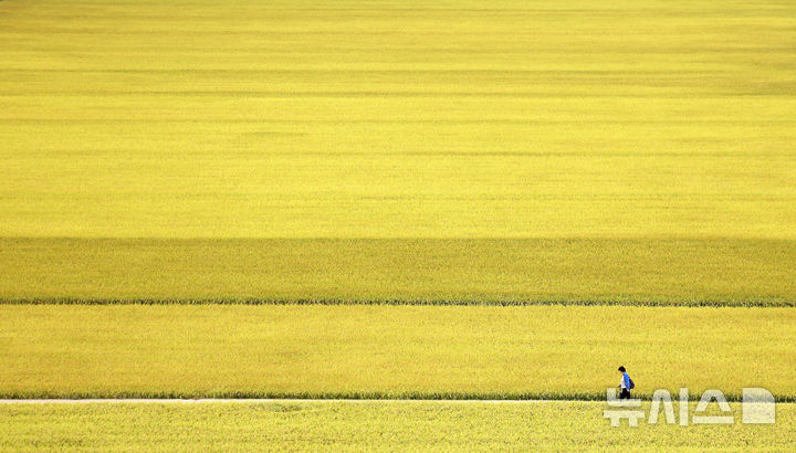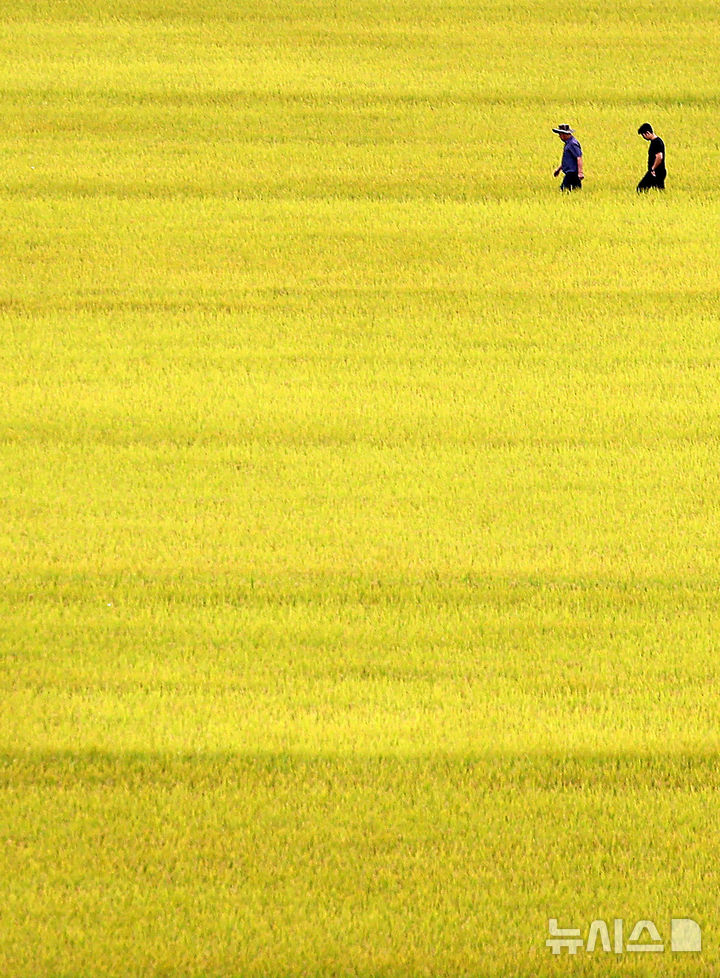 【NEWSIS】13日、大邱市北区の田んぼで、収穫目前の稲が辺り一面を黄金色に染めていた。