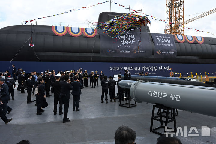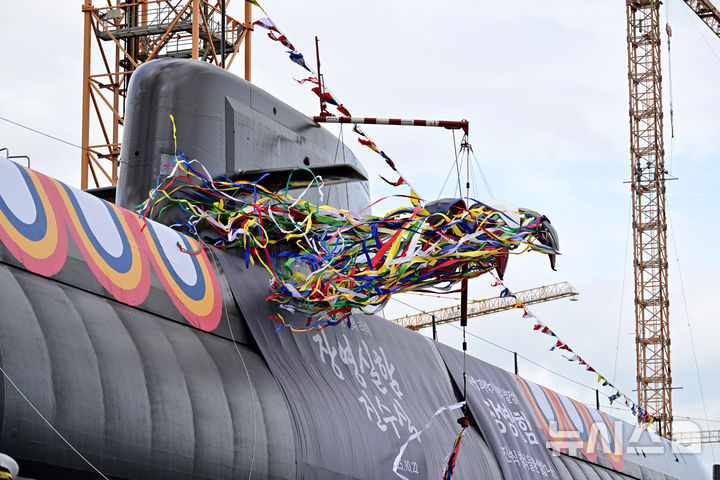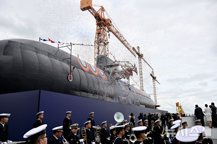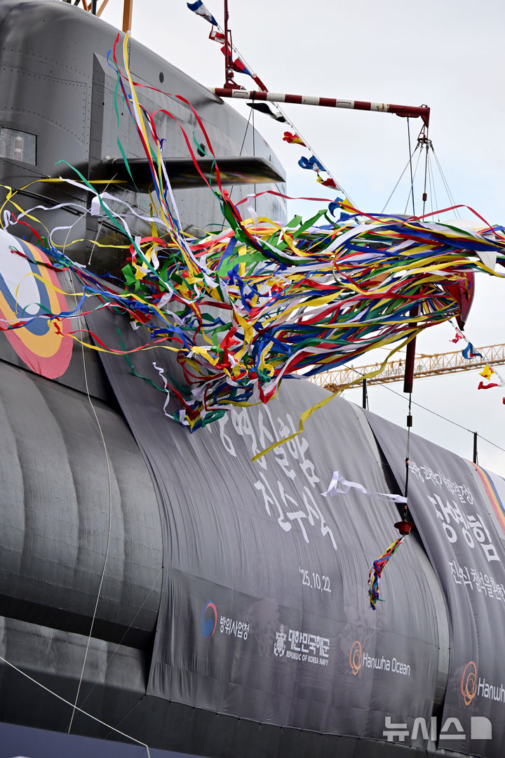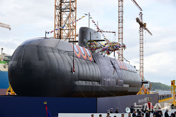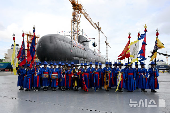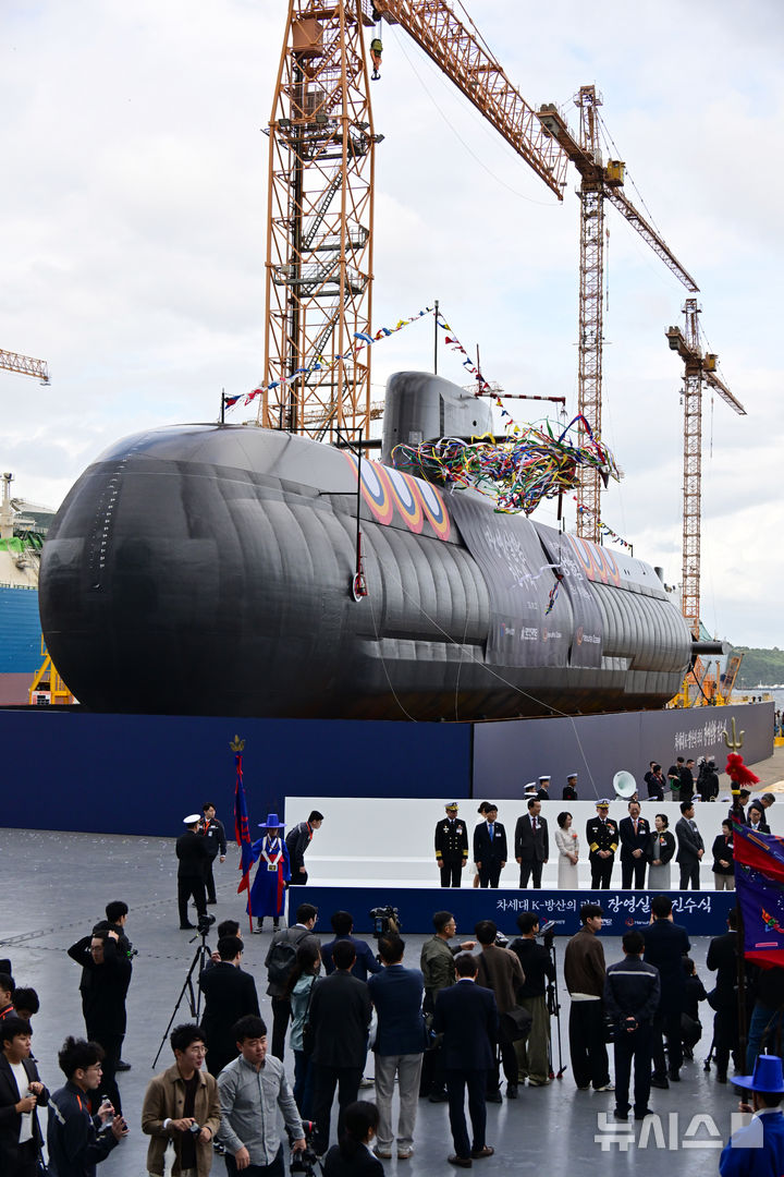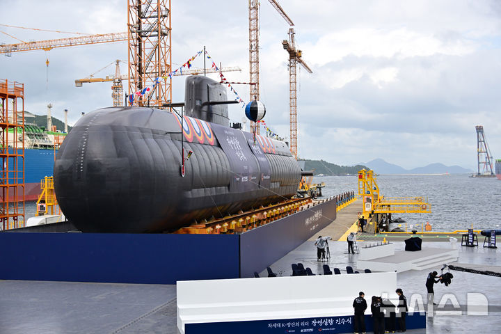 【NEWSIS】慶尚南道巨済市のハンファオーシャンで22日午後、張保皐III型バッチIIの1番艦「蒋英実」(3600トン級)の進水式が挙行された