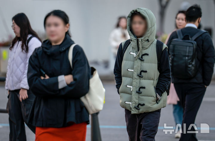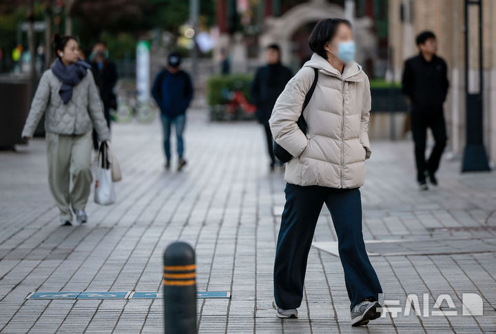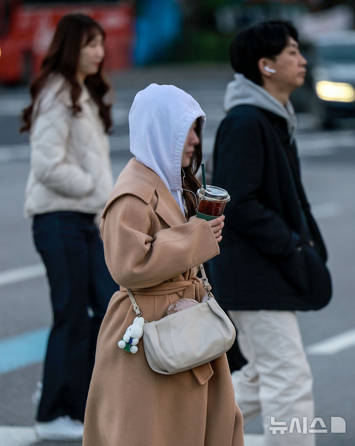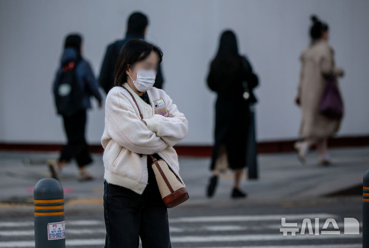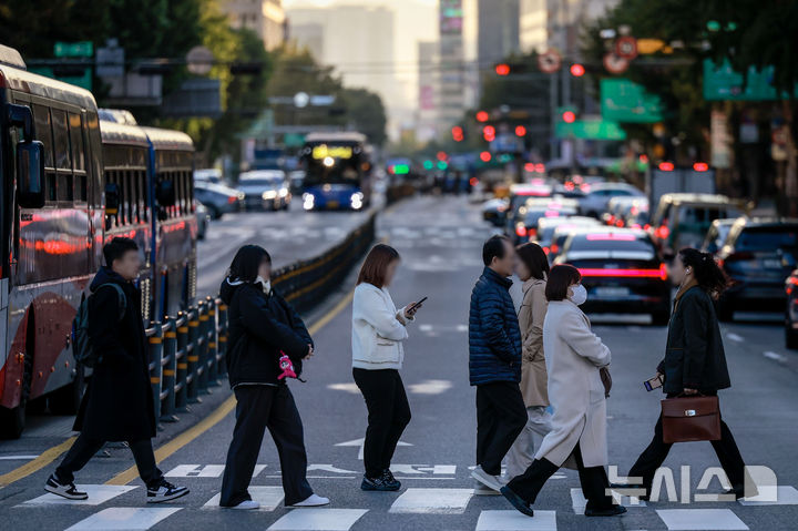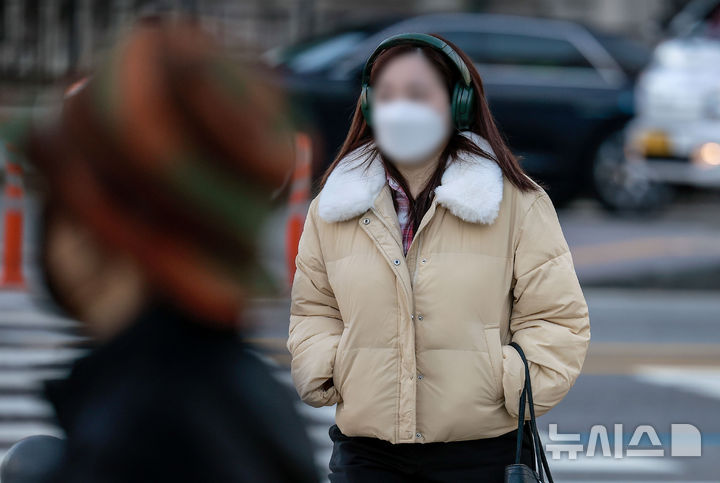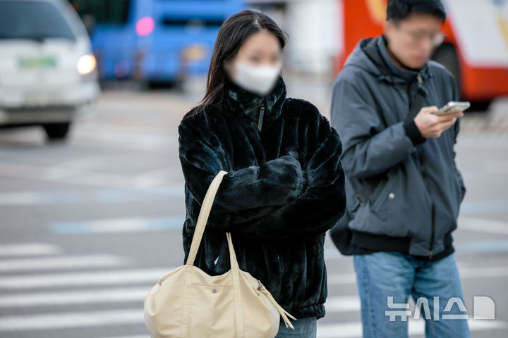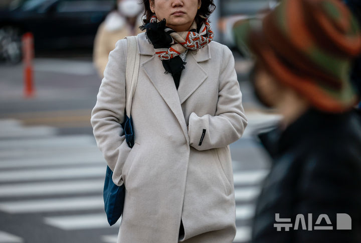 【NEWSIS】寒さが続いている28日、ソウル市鍾路区の光化門交差点で、厚手の上着を着て、背中を丸めたり手をポケットに入れたりして歩く人々。