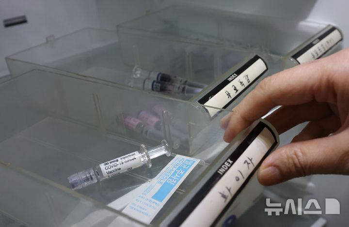 【NEWSIS】29日、ソウル市内のある耳鼻咽喉科クリニックに置いてある新型コロナワクチンとインフルエンザワクチンの様子。