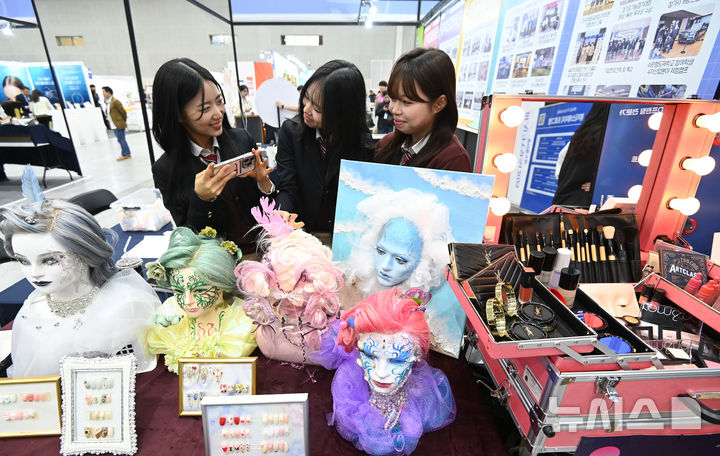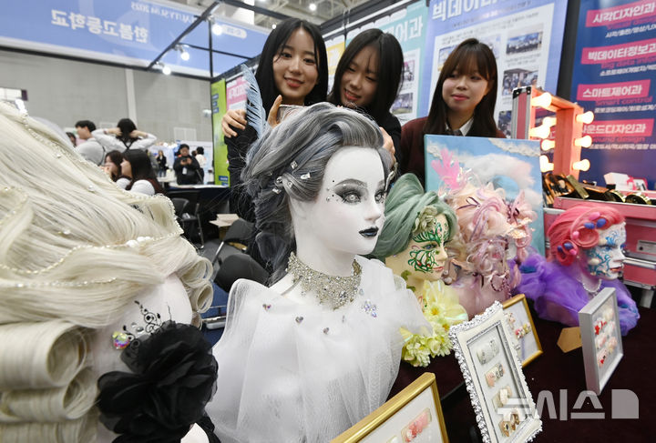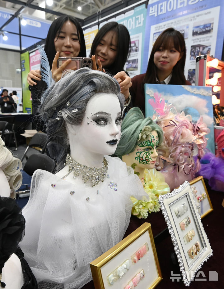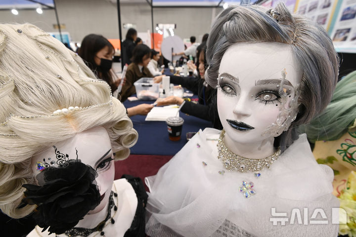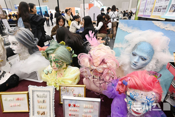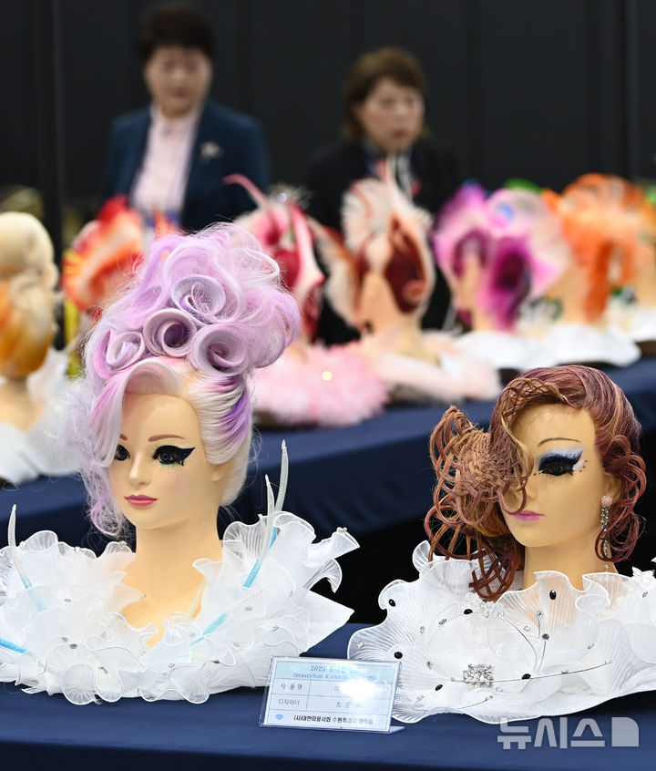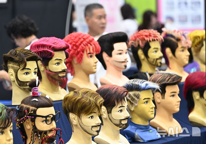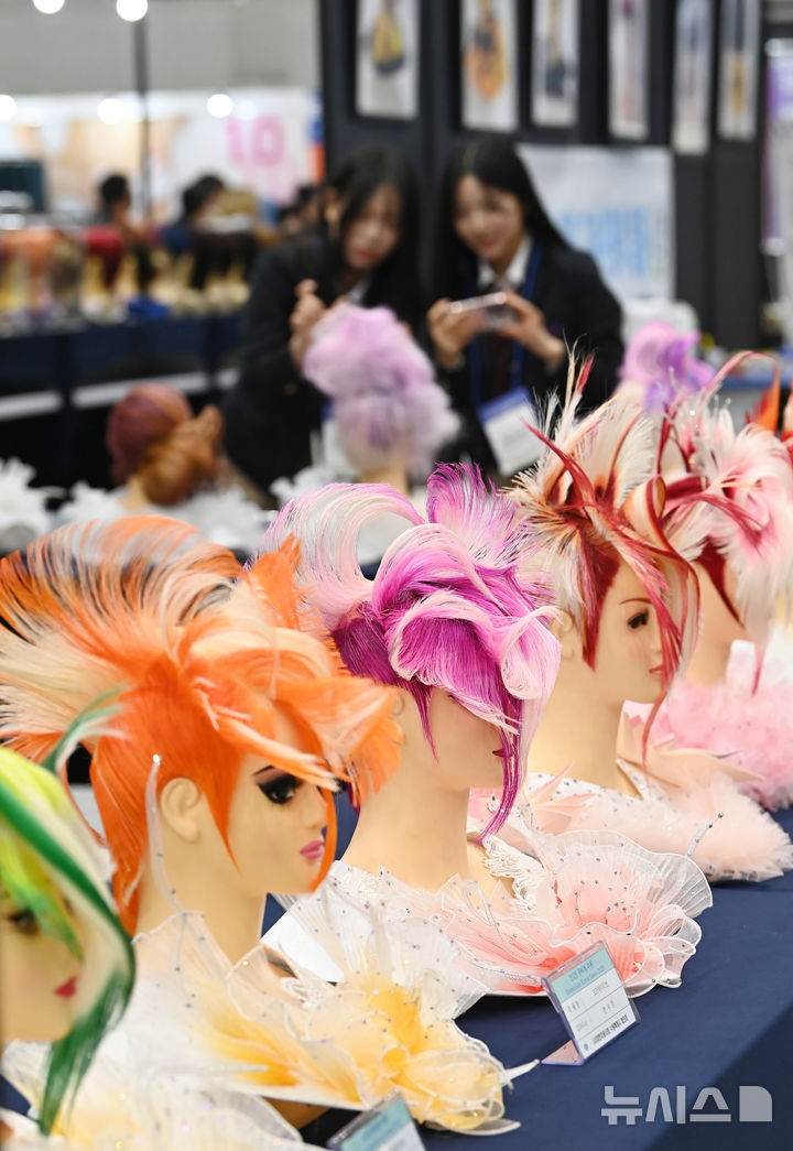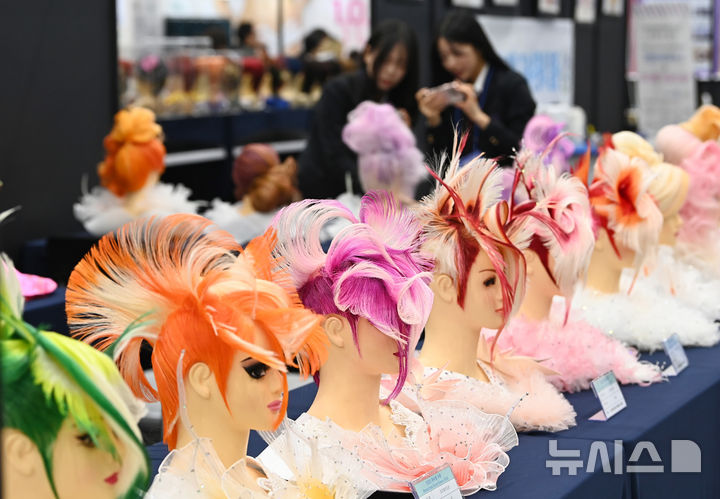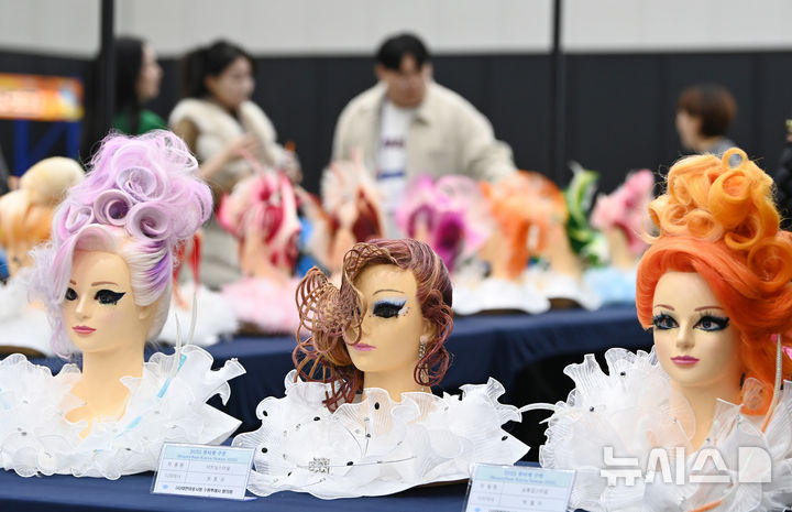 【NEWSIS】「BEAUTYSUM KOREA SUWON 2025」が開かれた31日、京畿道水原市霊通区の水原コンベンションセンターで、訪れた人々がさまざまなヘア作品を見て回っている様子。
