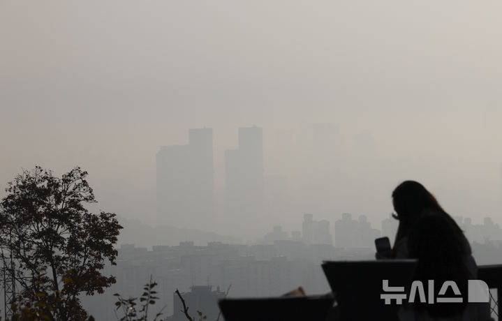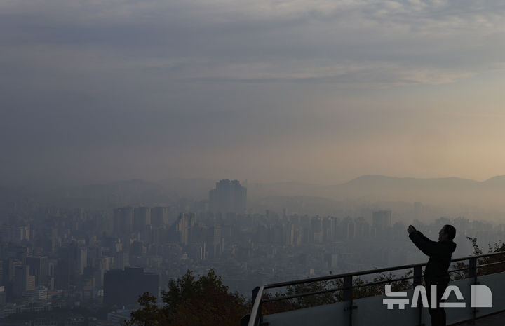 【NEWSIS】ソウル・首都圏地域でPM2.5(微小粒子状物質)の数値が上がった7日午前、ソウル・南山から見た中心部はかすんでいた。